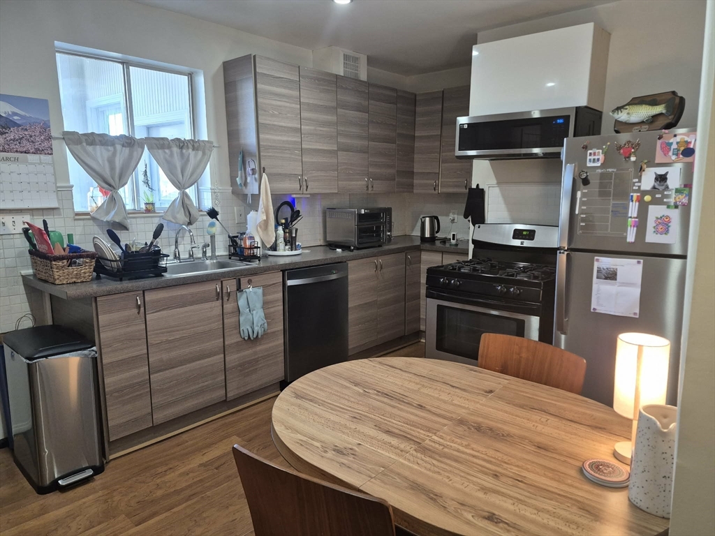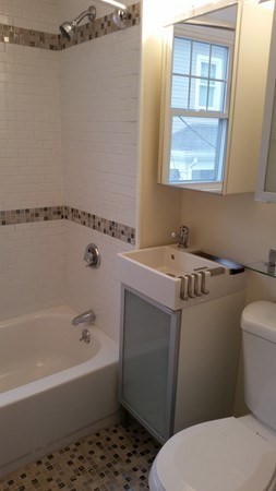 Cozy 1bed/1bath in Roslindale with modern kitchen and its own basement. This first floor unit offers wood gas stove, a living room with large windows and a bedroom with with exterior access. Right off the eat-in kitchen, a three-season enclosed porch is ideal for storage or sitting in the warmer months. ( unheated). This porch/sunroom overlooking a big back yard, offers access to the deck. Basement has storage and washer/dryer designated for this apartment. There is plenty of on-street parking. Gas for heating, cooking. Utilities are not included. Tenants will pay for gas, electricity and internet. Good credit and references required. June 1 move in. Close to Rossie square, shopping areas, restaurants, commuter rail, buses and more. First month rent, last month rent, security deposit are due at the lease signing.