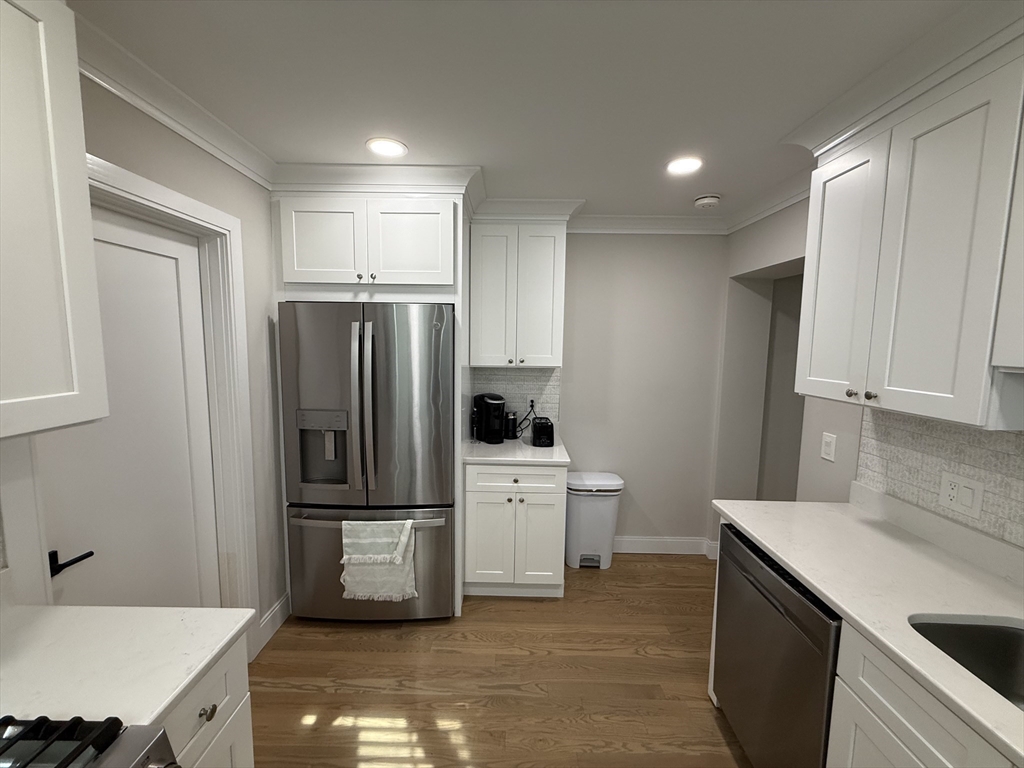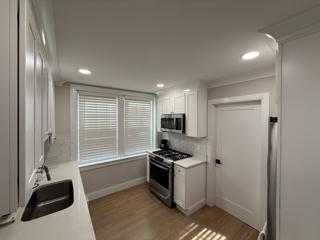 This sun-drenched completely renovated third floor apartment with hardwood floors throughout, features three good sized bedrooms, a sunroom overlooking Commonwealth Ave, a full bathroom, a living/dining room — and awaits its next tenant. The space has a contemporary aesthetic with natural hues and contrasting white trim. The newer stainless steel appliances and quartz countertops in the kitchen complete the experience. This unit has excellent proximity to Boston College, the T's Green Line, Cleveland Circle, the Chestnut Hill Reservoir and Brighton Center. There's on-street resident parking and this location provides easy access to the 'burbs, commuting routes, and downtown Boston. Come see this great apartment before it goes!