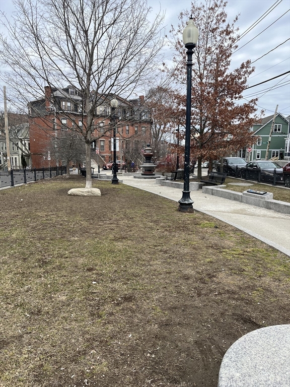Oversized and sun splashed. This contemporary three bedroom features high ceilings throughout, spacious open living/dining room, fully applianced galley kitchen, washer/dryer in unit, tile bath, hardwood floors as well as a large private deck. This wonderful brick bow front building is walking distance to both the Orange and Silver lines. Conveniently located near shopping, universities, museums, hospitals, highway, bike and jog paths, parks and restaurants. Must see!