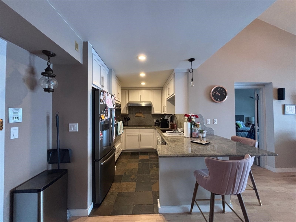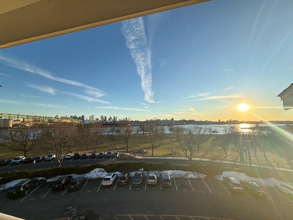 Available June 1st with first month's rent and security deposit. Perched atop Admiral’s Hill, this pristine 2-bedroom, 2-bath penthouse offers over 1,000 square feet of bright, open living space with beautiful harbor and Boston skyline views. The renovated kitchen features stainless steel appliances, granite countertops, and a breakfast bar that opens to the living area. The living room boasts cathedral ceilings and a slider leading to a private balcony. Additional highlights include central A/C, in-unit laundry, abundant closet space, and two assigned parking spots. Professionally managed building with an outdoor pool, located next to Mary O’Malley Park with riverside paths, tennis courts, and green space. NO PETS per association rules.