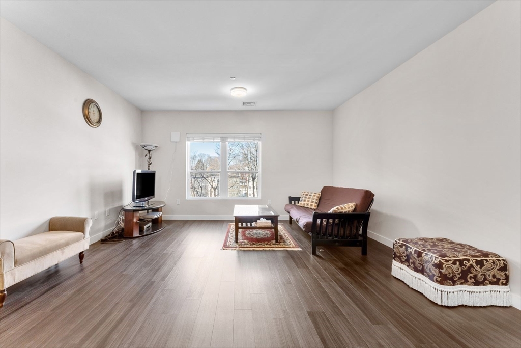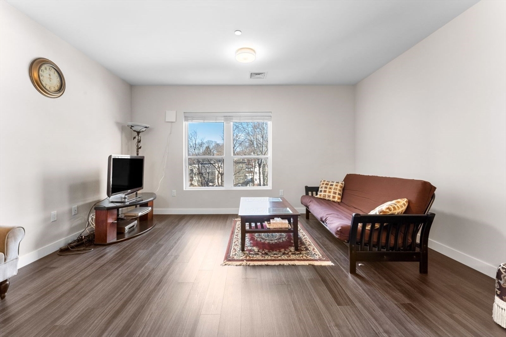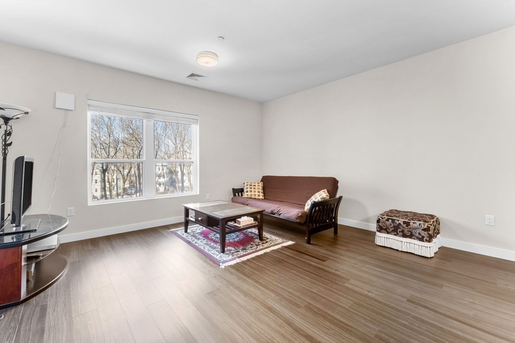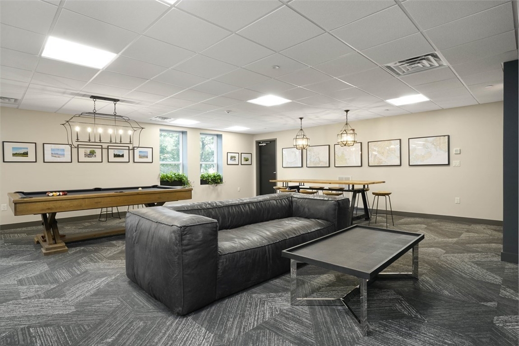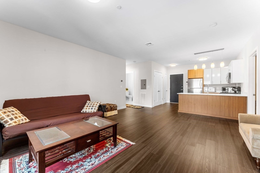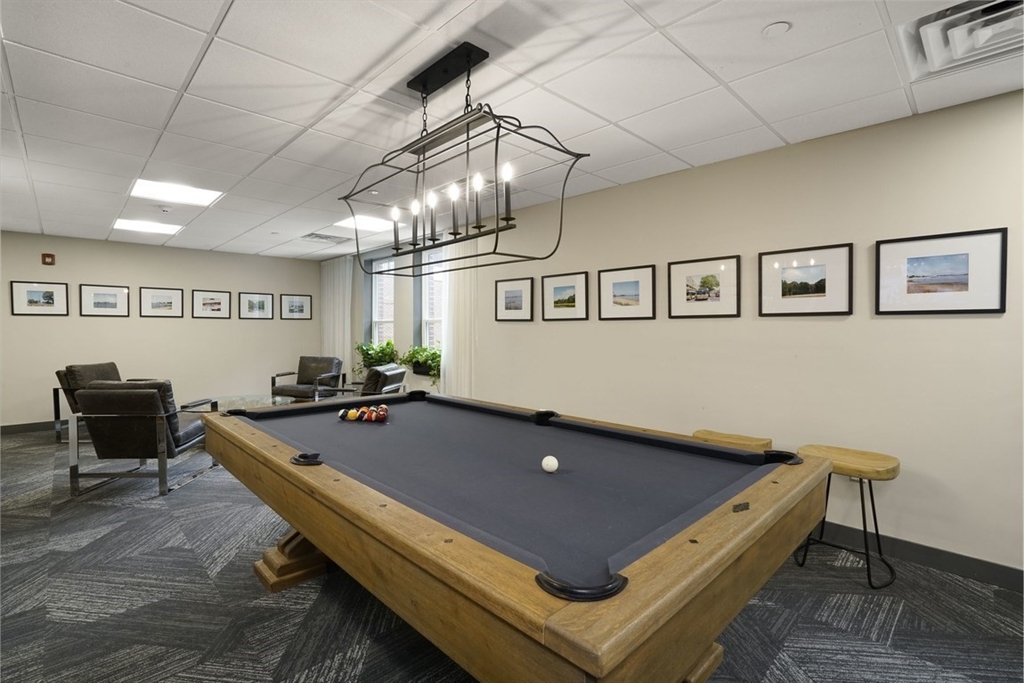 This beautiful condominium is a thoughtfully laid out 1 bedroom plus bonus den with garage parking and offers modern designer finishes and spacious rooms. The open living and dining area provides an excellent space for entertaining. The modern kitchen features custom cabinetry, stainless steel appliances, quartz counters, and peninsula perfect for barstools. Central A/C, Nest thermostats, in-unit laundry complete this fantastic sophisticated unit. Resident amenities include a common function room with a lounge area, large screen televisions, a pool table, and a kitchenette. Additional amenities include a fitness center and yoga studio, multiple outdoor spaces featuring a patio and roof deck both with outdoor seating and a great lawn with a running brook. The property is centrally located and walking distance to MBTA commuter rail, T stop, shop and restaurants in Quincy Center. Sorry, no pets or undergrad students.