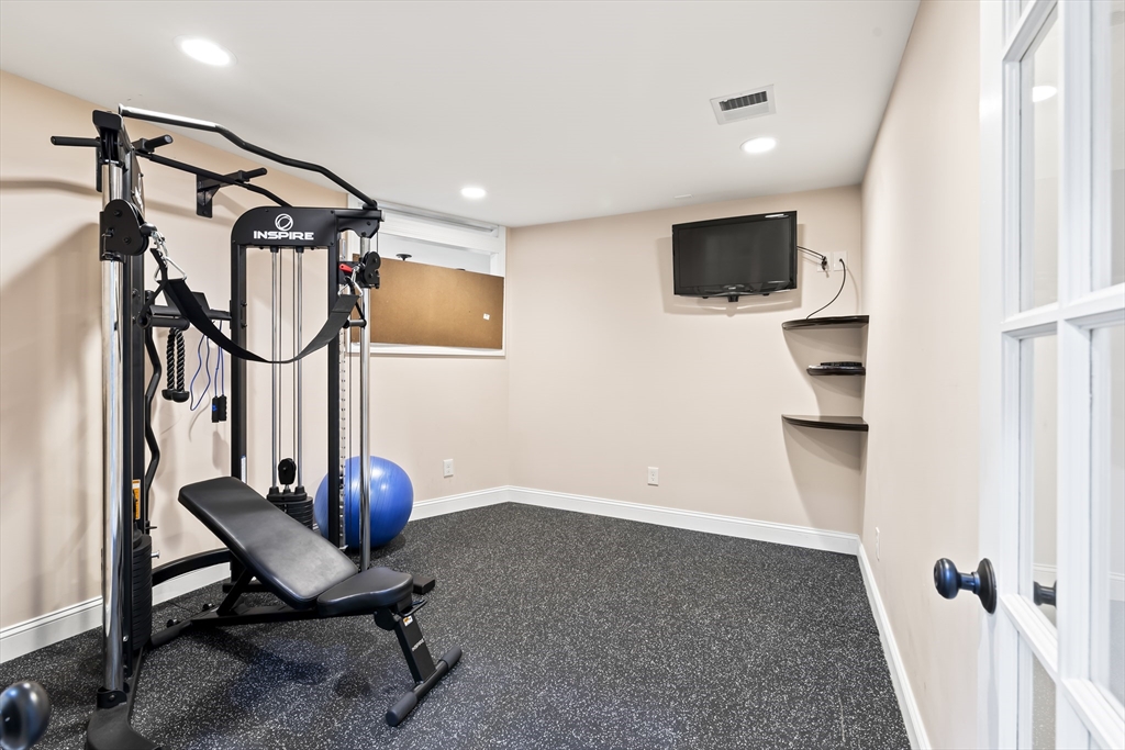 This house features three levels with hardwood floors throughout. Downstairs, there's a finished basement with a bar and fireplace, along with a gym equipped with exercise equipment.In the master bath, there's a luxurious jacuzzi tub for relaxation.Outside, enjoy the patio and deck with a gas grill for outdoor meals. The backyard is fully fenced for privacy, with woods behind the house.Additionally, a solarium provides plenty of sunlight throughout the day.Located in a great neighborhood, this home offers comfort, convenience, and a peaceful setting.Enjoy low electric bills with solar energy in this cozy home! Renter responsible for utilities and lawn maintenance. Small to medium-sized pets permitted.