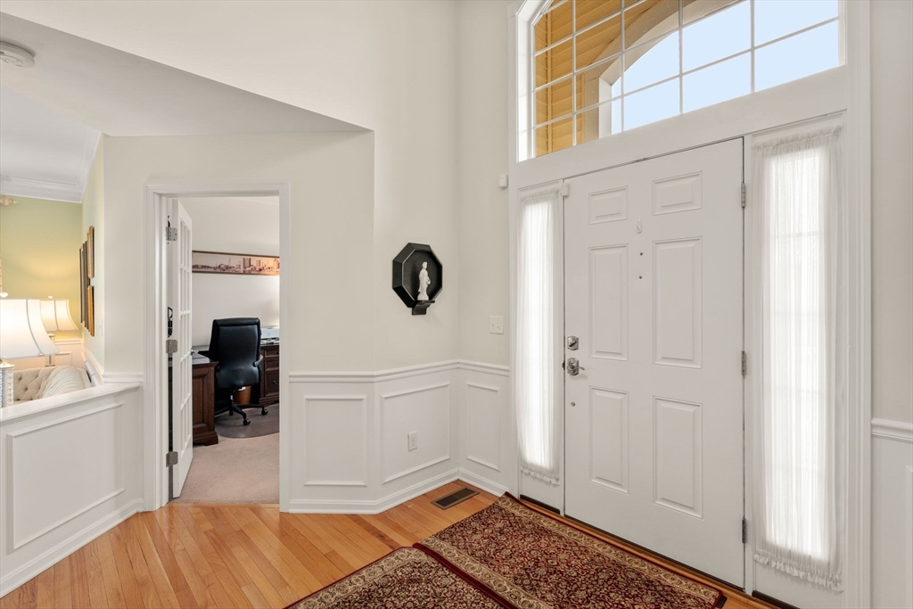 Discover this dramatic Laurel-style detached home, thoughtfully upgraded and enhanced by an exclusive yard featuring a private stone-wall and patio. Step into the impressive two-story foyer, where natural light pours in and introduces a beautifully flowing first floor. A home office, formal living room, and dining room set the stage for everyday living and entertainment. At the heart of the home is a stunning kitchen with sliders leading to the rear deck and patio, seamlessly connecting indoor/outdoor living. The kitchen opens to a breathtaking great room anchored by a gas fireplace and soaring 18-foot ceiling, creating a warm yet dramatic space. The first-floor primary suite offers convenience and luxury with a spacious double-vanity tile bath and a custom-designed walk-in closet. A half bath and laundry room complete this level. Upstairs, an open loft overlooks both the great room and foyer plus two additional bedrooms and guest bath. Basement allows for future expansion. Act now!