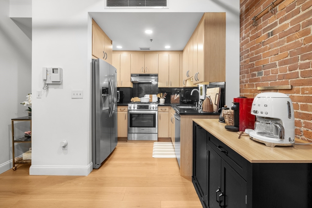 Elegant design and industrial charm come together in this beautifully crafted residence at Court Sq Press. Soaring ceilings, oversized windows, and exposed brick and beam details define the authentic loft aesthetic. Tastefully curated upgrades include chic wall coverings, wide-plank hardwood floors, and recessed lights. Expansive living and bedroom spaces offer ample storage, a thoughtfully designed bath, + deeded garage parking. Building amenities include 24/7 concierge, serene bamboo courtyard, bike storage on each floor, a fully equipped fitness center, and a spectacular roof terrace with heated lap pool, grills, and reservable entertaining space. Just over the bridge from the South End’s SoWa District with easy access to the Financial District, Mass Pike, I-93, and Logan Airport. Enjoy exceptional dining, shopping, nightlife, and outdoor pursuits, including Southie beaches and the hotspots scrolling across your feed. An urban oasis at the gateway to Boston, New England, and beyond.