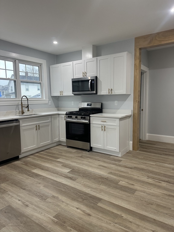 4 large bedrooms ALL NEW with large closets, beautiful open concept kitchen with quartz kitchen, Stain less steel appliances. washer and dryer in the unit. all hardwood floor thru out , parking for 1 car, large customize luxurious bathroom. central heat. beautiful modern unit in desire costal of Winthrop.