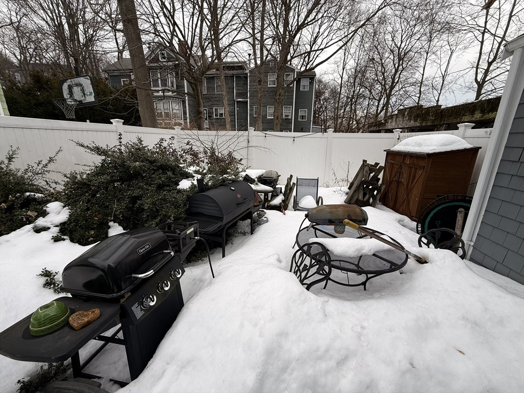 Spacious three-level townhouse at 9 Biltmore St with modern updates and a flexible layout. The first floor features a newly renovated white kitchen with dishwasher and garbage disposal, in-unit washer/dryer, dining room with storage closet, and a bright living room. The layout allows for a 5th bedroom by converting the living room, with the dining room serving as a living space.The second floor offers two bedrooms and a full bath, while the third floor includes two additional bedrooms and a half bath attached to one room.Located just a 5-minute walk to Green St (Orange Line), with easy access to shops and transit. Private patio included.Management will refinish/replace flooring in the living room, dining room, and entryway Aug 31–Sept 2 (approx. 48 hours). Bedrooms and bathrooms remain accessible via the back hallway during work.