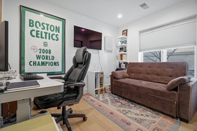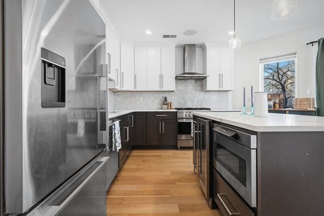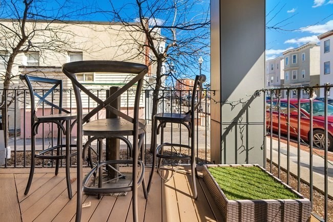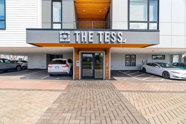 Welcome to this first-floor residence at The Tess. This 2-bedroom, 1-bathroom condo offers a thoughtful layout with modern finishes throughout. The kitchen is surrounded by windows, bringing in an abundance of natural light and flowing seamlessly into the living area. A covered deck just off the main living space extends the home outdoors. Both bedrooms are well-proportioned, with the primary offering two closets, while the second bedroom comfortably accommodates a full-sized bed. The bathroom features a double vanity and tiled walk-in shower. Two parking spaces are included. Conveniently located near Constitution Beach and the Orient Heights T stop, this home offers easy access to both the city and the waterfront.