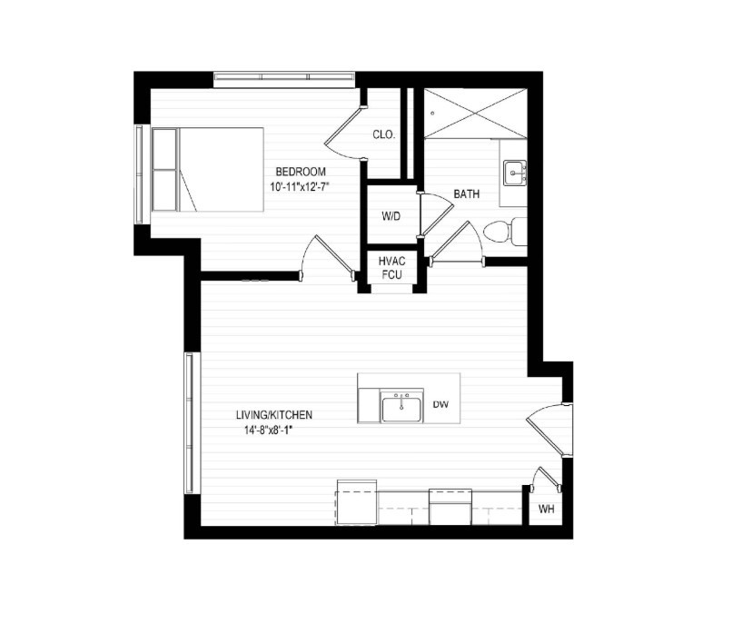 New construction unit with beautiful city views and modern finishes. Features hardwood floors, recessed lighting, ceramic tiles, and a sleek kitchen with stainless steel appliances. Amenities include in-unit laundry, walk-in closet, fitness center, bicycle storage, and shared roof deck.