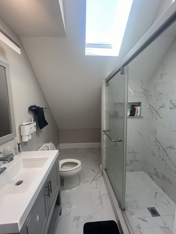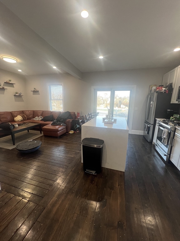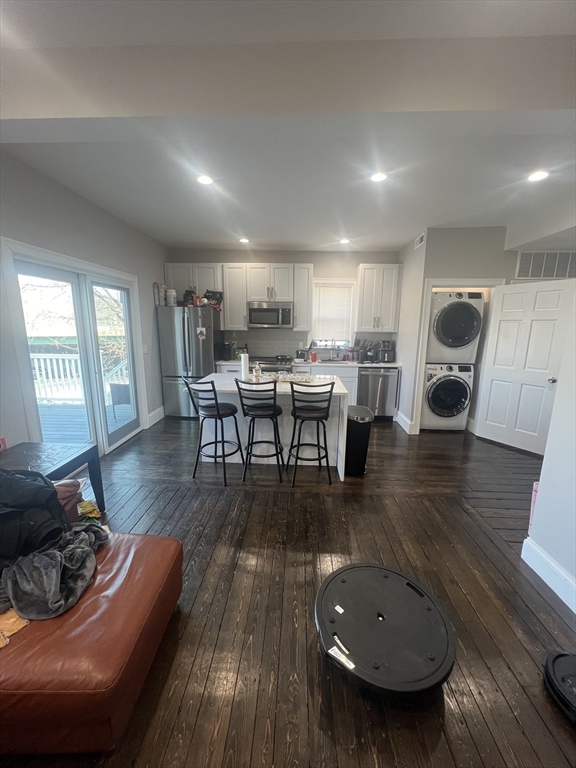 Fully renovated 4 bedroom, 2 bathroom duplex with open concept living area. Parking available. The Polish Triangle location, just .4 mile from Andrew Station, makes commuting easy! The kitchen features white quartz counters, white shaker cabinets, and stainless steel appliances. There is an island that is open to the living area along with a glass sliding door onto the deck. There is laundry in unit, HVAC, and an incredible top floor primary suite with its own bathroom and vaulted ceilings. There are hardwood floors throughout, except in the fully tiled bathrooms, featuring glass shower doors! Short distance to all that Southie and Dorchester have to offer!