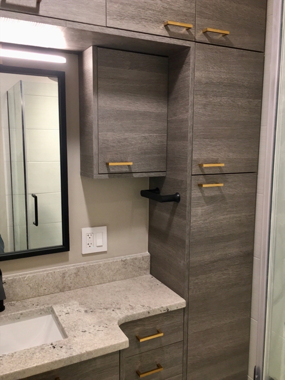 A thoughtful renovation of this studio in a brick Victorian row home.A built in paneled wall can flex between a queen size murphy bed or dining table/desk that are flanked w/ storage space on either side. New wide plank white oak floors contrast well w/ historic details like crown molding, window trim, tall baseboards & a decorative fireplace w/ mirror (included). A sleek new kitchen w/ under cabinet lighting, quartz counters & backsplash, SS appliances (d/w, range & refrigerator), built in microwave & combo washer/dryer. Breakfast bar w/ 2 stools (included).The stylish bathroom has a walk in glass enclosed shower, great lighting & storage. A walk in double closet at entry. A cabinet & drawers,& large storage loft. USB ports, dimmable lighting. Water usage, gas for cooking,H/W & heat included in fee. Non smoking professionally managed association. Convenient to BUMed, Tufts Med & NE. Public transportation (Bus #43 at corner of Tremont St, orange/silver lines, bluebikes &zipcars)