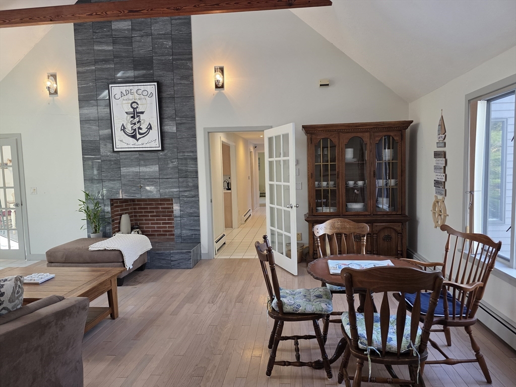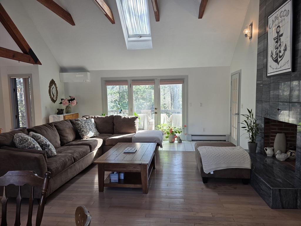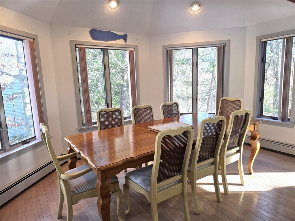 This is a 3-4 bedroom, 3 full bath, 2 half bath Contemporary - Soaring ceilings, lots of glass, large rooms, Vaulted ceilings in the great room with fireplace, 2 dining areas, living room and lounge area- sliders to deck for easy access. Kitchen offers bowed out breakfast area, Center island and lots of built ins and storage. The main floor also holds a quiet tucked away den or home office and a primary bedroom and bath plus half bath. 2nd level offers 2 bedrooms and 1.5 baths-, the largest bedroom offers a fireplace, built ins and a lounge area with circular walls and windows! The Full basement is finished with laundry and a separate full bath. 2 car attached garage. Owner may consider 1 small dog. Great location in Centerville at the beginning of a cul-de-sac! Just 1.5 miles to Craigville Beach!
