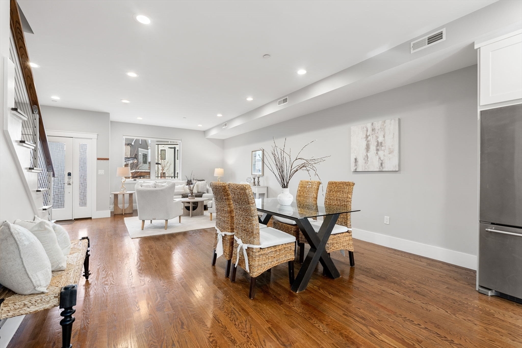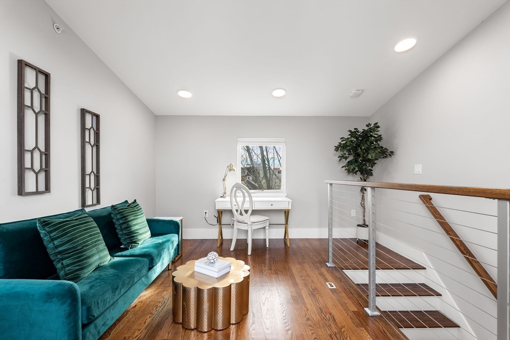 Welcome to Cedar Place — where private townhouse living meets vibrant Somerville energy. Sun-filled 2BR+/2.5BA home lives like a single w/ private entrance while offering the perfect blend of autonomy and community. 1st floor features open layout designed for entertaining, w/ spacious living room overlooking courtyard, generous dining area and seamless flow into a cook’s kitchen appointed w/ Shaker cabinetry, quartz counters, center island, KitchenAid appliances. Natural light abounds, enhancing the bright, airy feel on every level. 2nd floor features oversized primary suite w/ luxurious bath w/ double vanity, well-proportioned 2nd bedroom, full bath + in-unit laundry. 3rd floor loft/study is a standout — a light-filled space open to a private, sun-splashed roof deck. Outdoor living continues w/ a rear patio and a beautifully landscaped common courtyard w/ firepit. Covered bike storage, premier garage parking space, near Bike Path, Davis/Porter, Green Line (Ball & Magoun) and more.