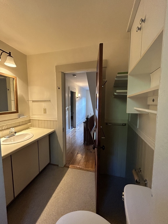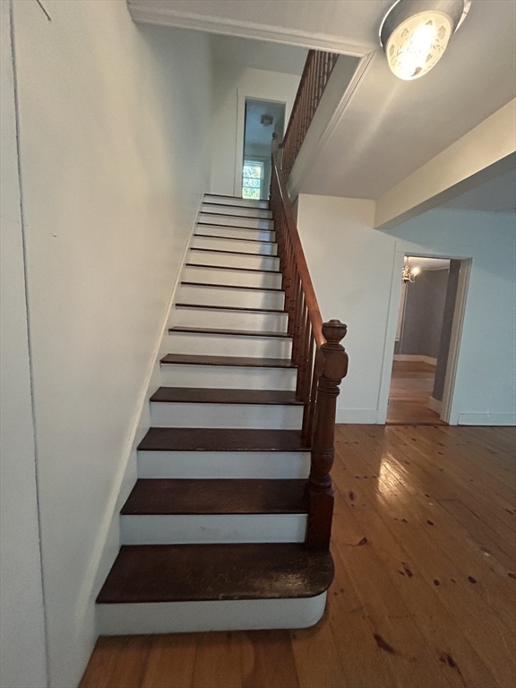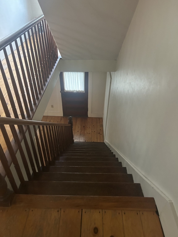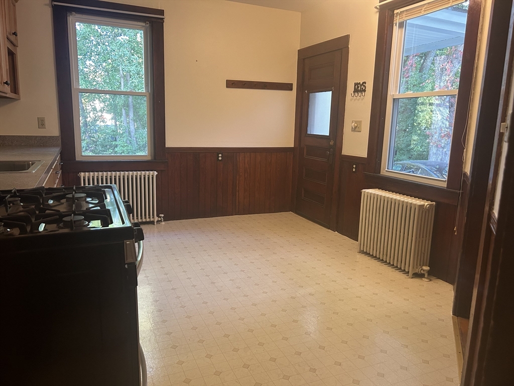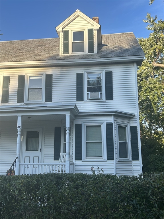 This lovely duplex apartment boasts abundant space & charm. Large kitchen offers plenty of cabinetry, gas range & refrigerator. The dining room & living room (w/built-in) have lovely hardwood floors and are flooded with natural light. Beautiful staircase leads to the second floor with two well-appointed bedrooms and a bathroom with shower. The walk-up attic has two additional storage spaces. This apartment has a front & back entrance as well as a shared yard. There is off-street parking for two cars. Laundry is located in the basement. Great location: close to Littleton Center, shopping, commuter train, major routes & recreational areas.