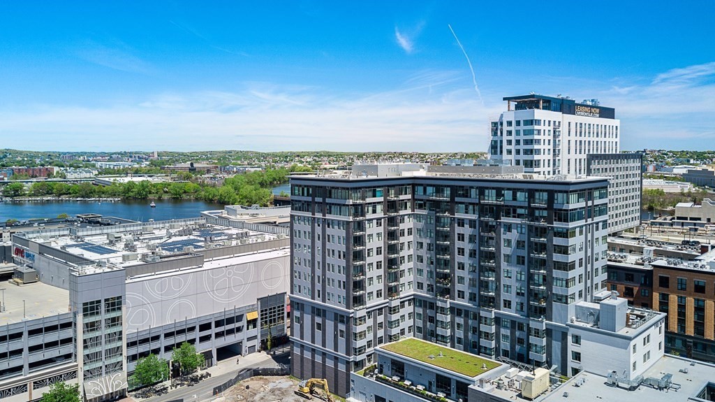 Ready to live in a full service neighborhood with everything at your fingertips? This 1 plus Den (small second bedroom) apartment is perfect for anyone looking for a second room for guests or an at home office. Modern appliances and finishes throughout, the apartment still appears like new. An excellent balcony looks out on all the action assembly row has to offer. The building features a concierge, elevator, a lounge with a billiards table, a common roof deck with gas grills and fire pit, access to a pool and a gym! Direct access garage parking. Every modern convenience can be found in Assembly Row. Photos are of same layout two floors below. Den does not have built-ins and Floor and cabinet color slightly different.