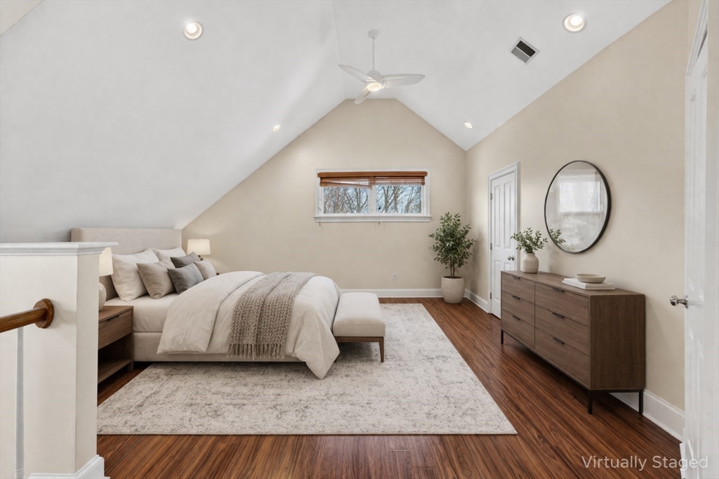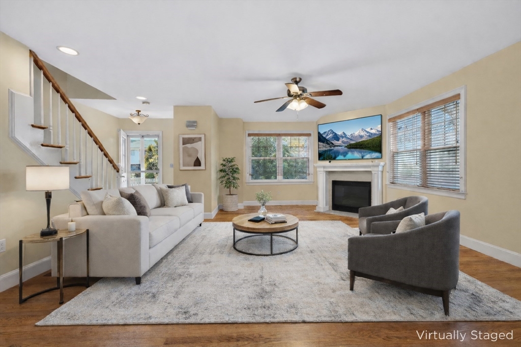 Available now! Working from home just got a lot better! Spacious Quad-Level Single Family townhouse provides you with endless options. 5 bedrooms, 3 1/2 baths, hardwood floors throughout the main level. Cozy up to the fireplace in the sizeable Living Room. Gather around the island in the open Kitchen with white cabinets, SS appliances, granite counter top and enjoy your meals in the adjacent Dining Area. Or head out to your private deck that overlooks your fenced in back yard and gardens!! Looking for more space or to create a full level for your home office, just head to the fully finished basement with laundry. End your days in the Primary bedroom on the 2nd level with en-suite spa-inspired bath. Be part of the Nonantum community and relish in everything it has to offer. Moments to the Charles River & Bike Path for your daily exercise routine. Photos may include virtual staging and/or digital enhancements to illustrate possible use of space.