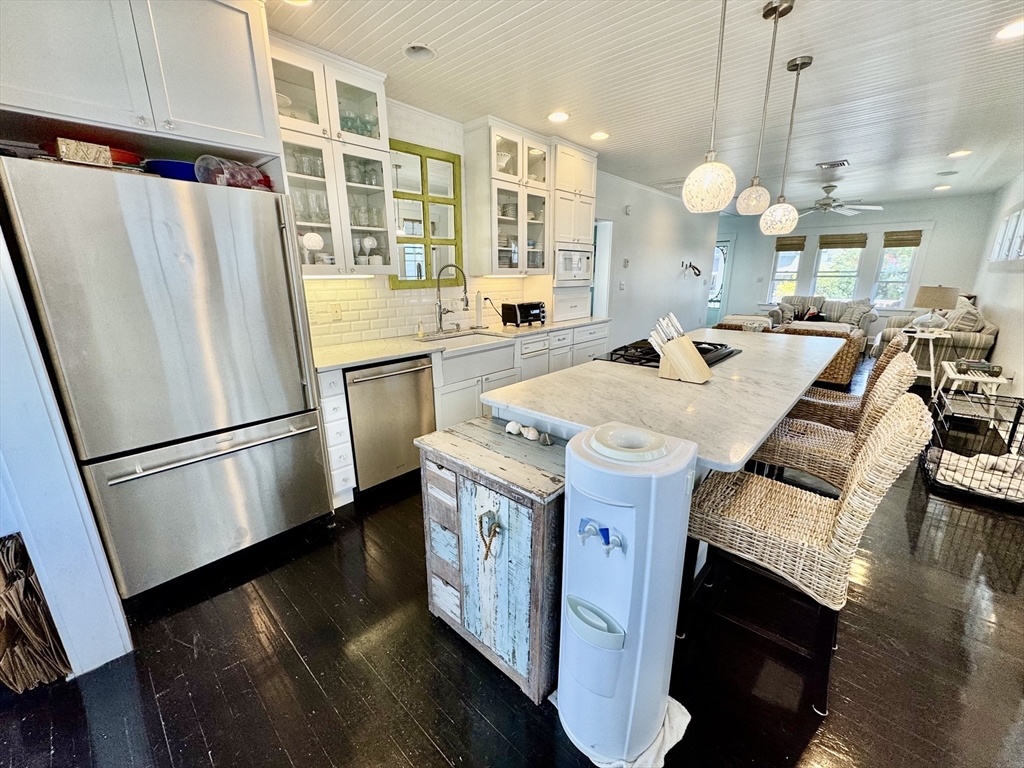 The month of AUGUST is Available. This stunning, fully remodeled 4 bedroom, 2 bath AUGUST rental is tastefully furnished and just steps from the ocean and Nantasket Beach. The show stopping Carrara marble and stainless kitchen features a massive island and an open-concept layout to the living room perfect for entertaining. Both the dining area and the primary bedroom offer sliders to an expansive deck overlooking a beautifully manicured yard. The finished lower level provides a cozy family room, a home office, and an inviting bar area. Conveniently located just a short drive to the commuter ferry and train to Boston. Come see why Hull is the place to be!