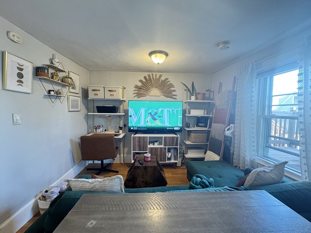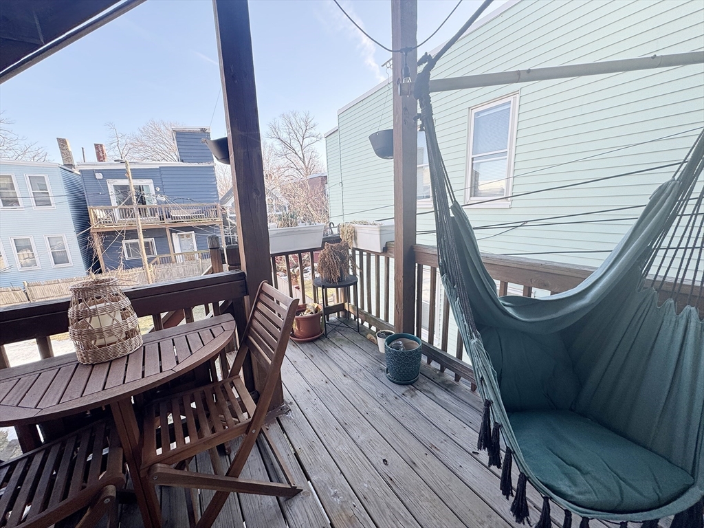 AVAILABLE 5/1: Front facing second level efficient 1 bedroom featuring A/C, private laundry in basement, hardwood floors, eat in kitchen, private back deck, and common patio/yard! Open concept living room/ kitchen area and bedroom with nice bay window that fits queen bed. Great light throughout! Minisplit AC/ heat. Lots of outdoor space for dining and gardening! Gas hot water/dryer/cooking and electricity usage paid by the tenant. Strong credit, income verification, and strong landlord references required. First months rent, one month security deposit required for move in. No smoking. Located less than a half mile from Wood Island T on the blue line, and convenient to I-93, I-90, Route 1, and many parks and restaurants.