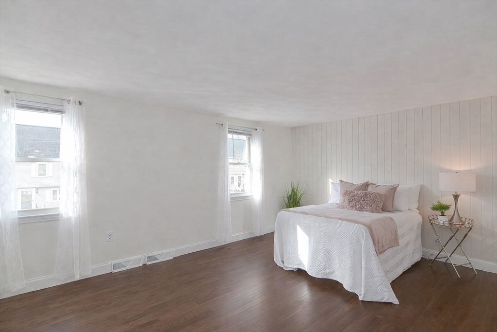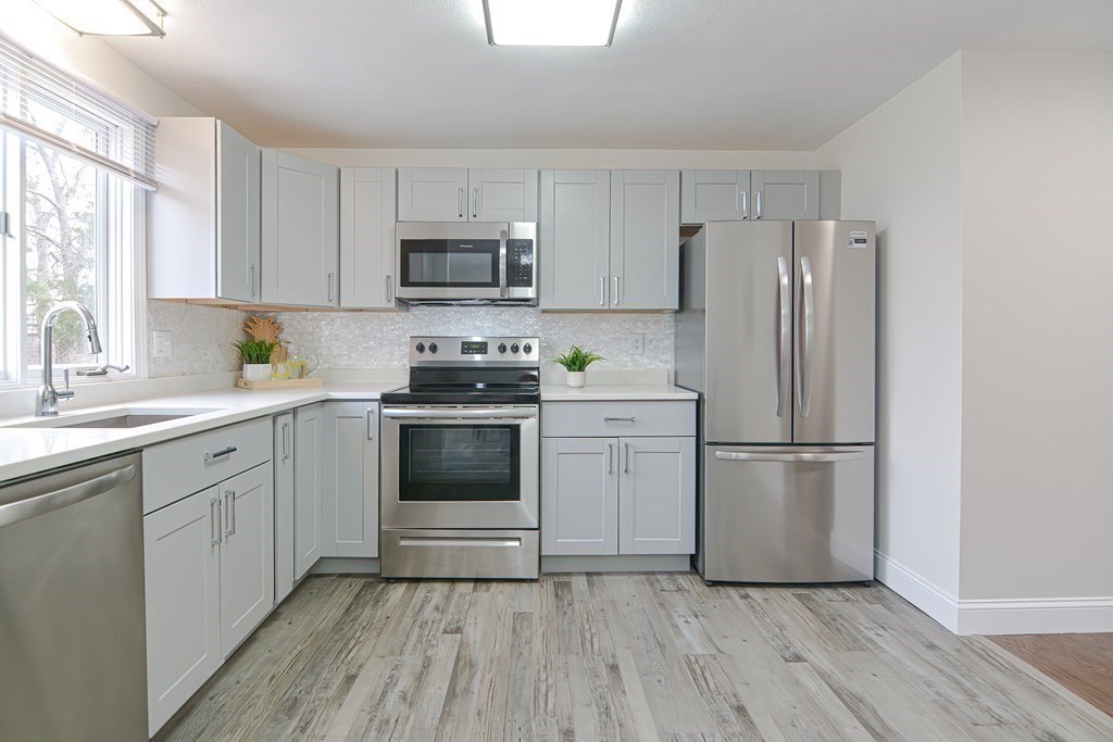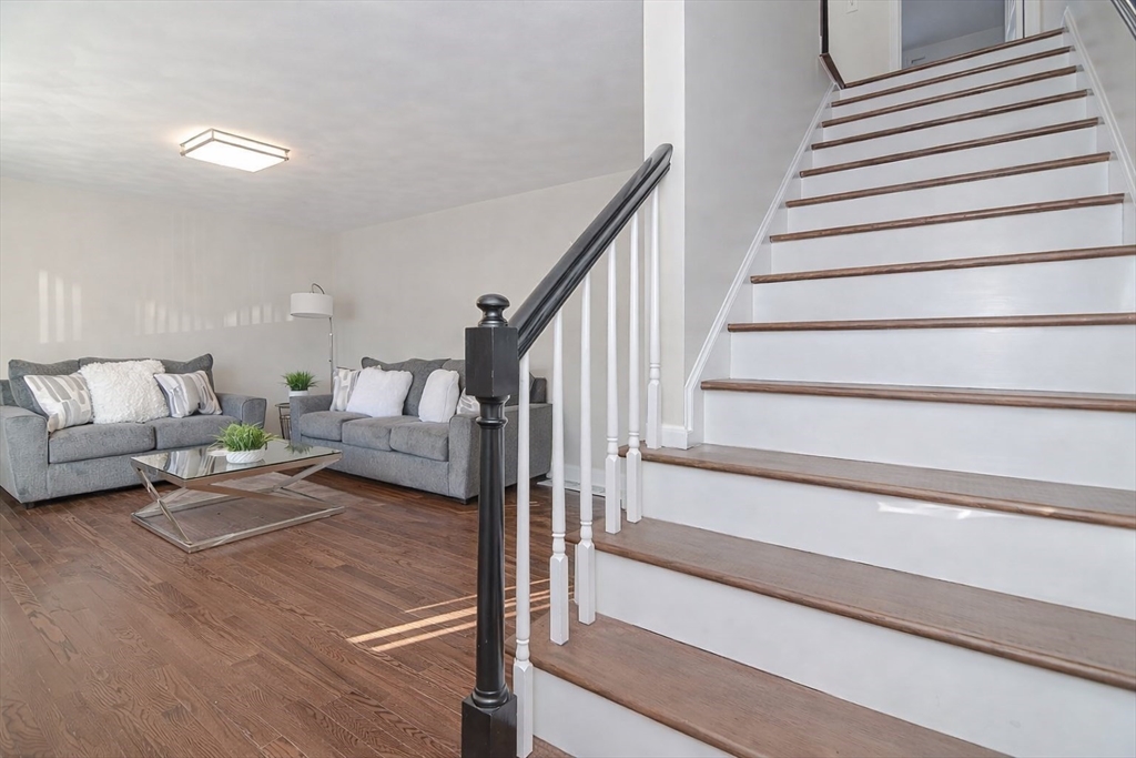 Pristine, updated townhouse rental with elegant finishes throughout! Sun-filled family room with new hardwood floors and a beautiful wood staircase. Stylish kitchen features gray cabinetry, quartz counters, backsplash, and brand-new stainless steel appliances. Spacious eat-in area with slider to deck overlooking open green space. Designer half bath with shiplap and gold accents. Two large bedrooms with hardwood floors, plus an updated full bath. Finished basement offers bonus space, additional flex space/office, a washer/dryer, and ample storage. First month and security required. No smoking. Pets negotiable. All occupants 18+ must complete application/credit check ($49 each).