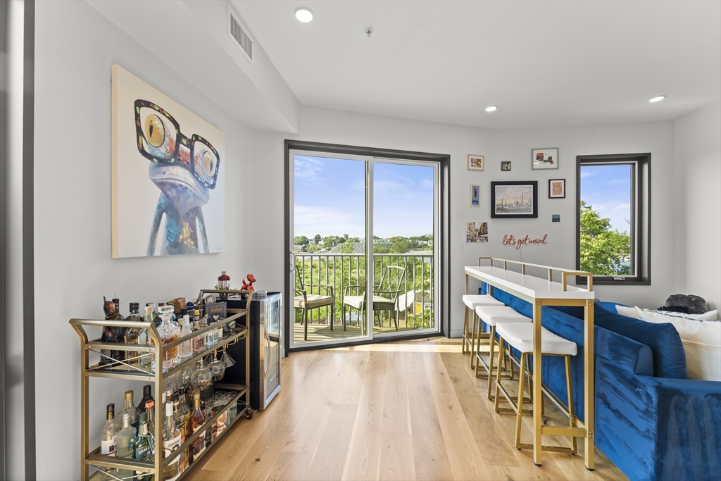 Exquisite waterfront penthouse offering approx. 976 sq ft of refined living space with 2 bedrooms and 2 full bathrooms, featuring custom high-end finishes throughout. The open-concept layout is filled with natural light and showcases hardwood floors, oversized windows, and stunning harbor views. Additional highlights include a private balcony, garage parking, central air, and thoughtfully designed contemporary details. Completed in 2022, the residence remains in mint condition with modern building systems. Building amenities include a common roof deck with panoramic city and water views and a pet spa. Ideally located in East Boston’s vibrant waterfront community near Condor Street, with easy access to parks, green space, and harborwalks. Convenient commuting options include the Blue Line Airport Station, Sumner Tunnel, Tobin Bridge, and ferry service offering seamless access to downtown Boston and beyond.