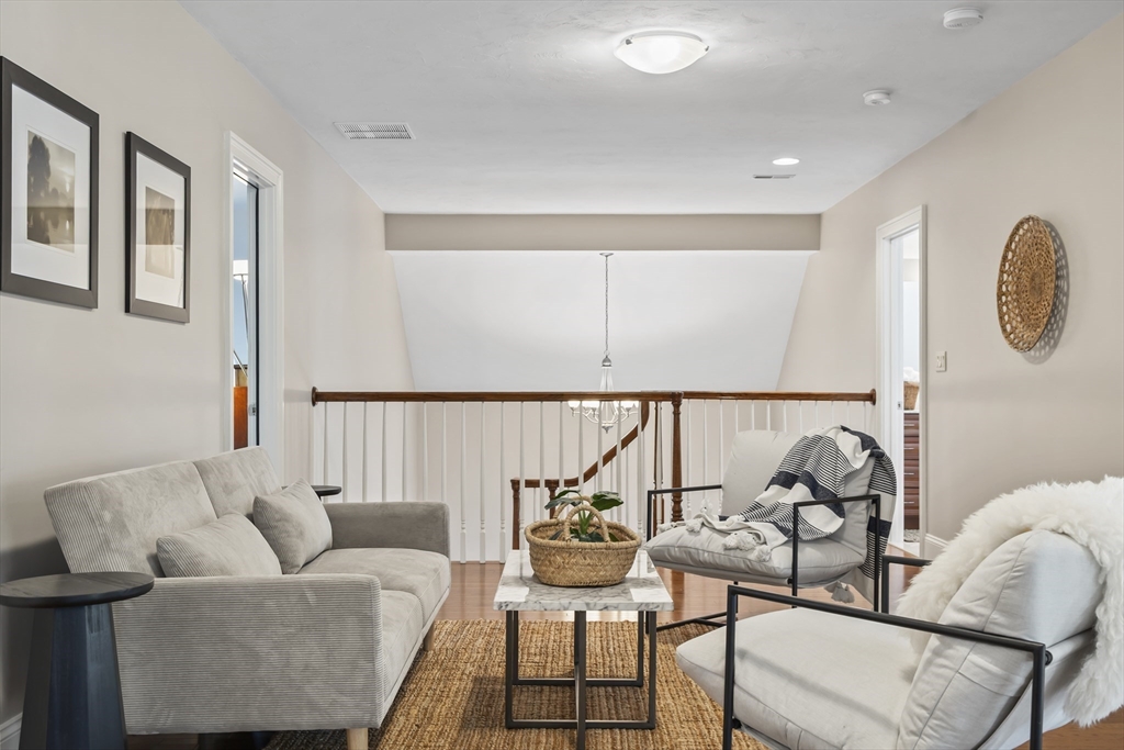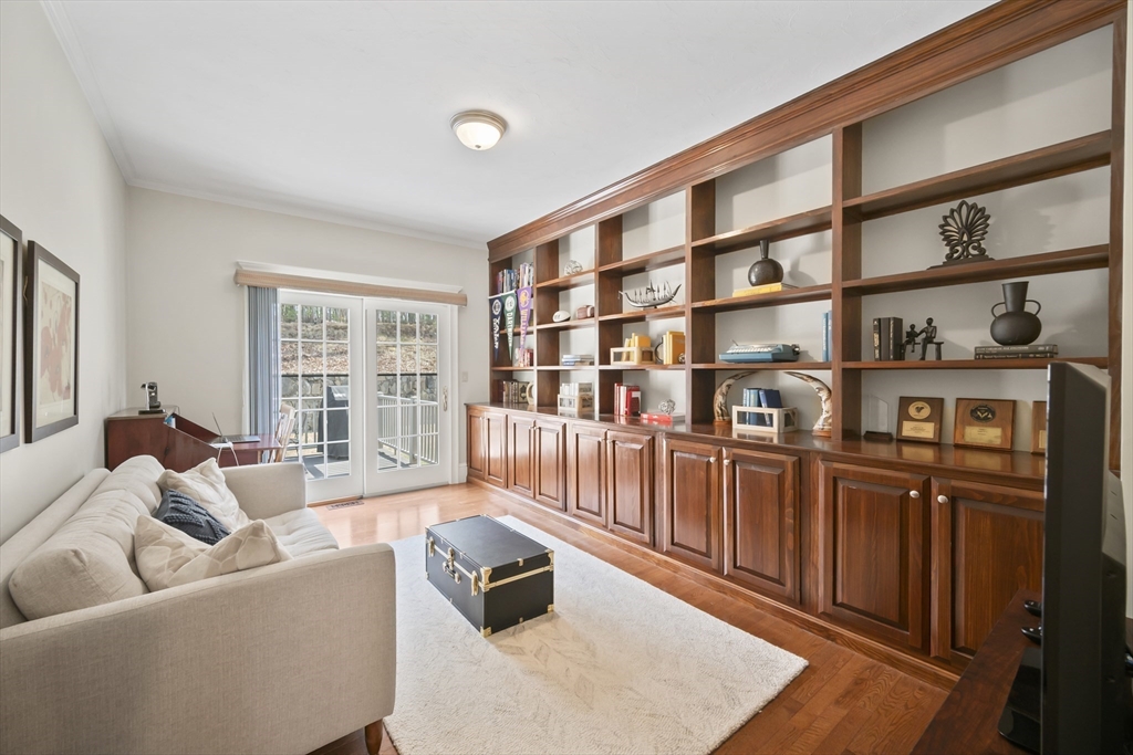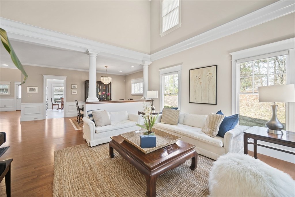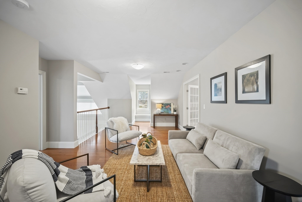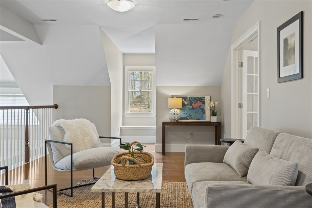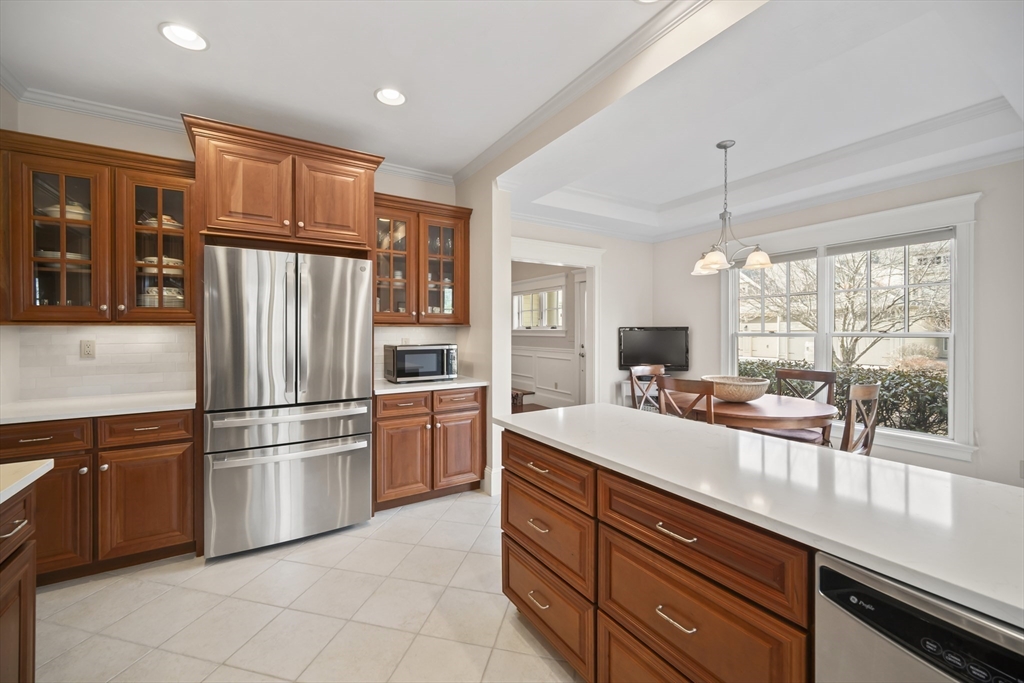 Rare opportunity to own a stunning end unit in sought-after MAHONEY FARMS! Ideally located near shops, restaurants & major routes, yet set in a peaceful & established community. Elegant architectural details abound with soaring ceilings, oversized windows, hardwood floors, spectacular crown moldings, wainscoting & custom built-ins. A dramatic 2-story foyer flows effortlessly into the 16x16 great rm with a gas frplc & an elegant entertaining-sized dining room, perfect for the holidays! The sun-filled chef’s kitchen offers ample cherry cabinetry, quartz countertops, SS appliances, gas cooking & a spacious bright breakfast rm. A private 1st flr office/library with built-ins provides access to the deck & patio. The 1st-floor primary suite features a tray ceiling, walk-in closet & spa-like bath w/ quartz countertops, dual vanity + whirlpool tub. Upstairs is a 2nd bdrm, loft, flexible 3rd bedroom/office & bonus rm! 1st floor laundry, half-bath, 2-car garage, terrific side yard + rear yards.