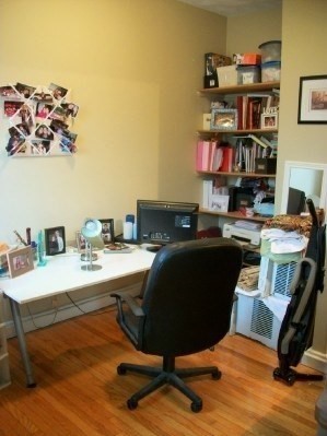 Great one bedroom with hardwood floors, high ceilings, open kitchen living room, office nook, laundry in the unit and private deck.