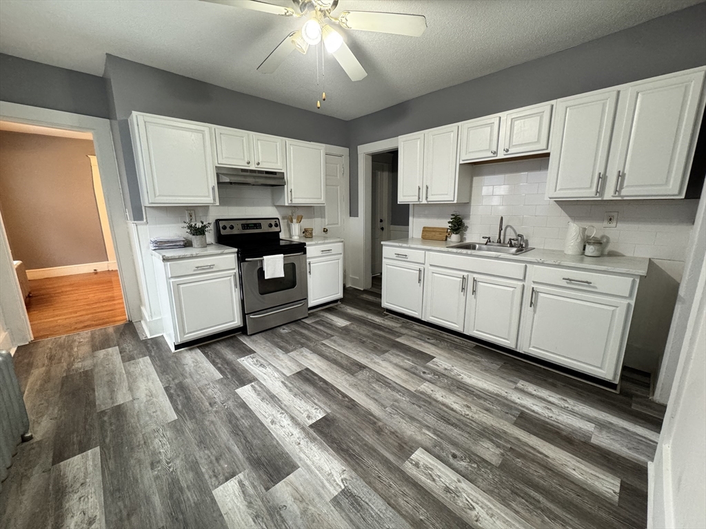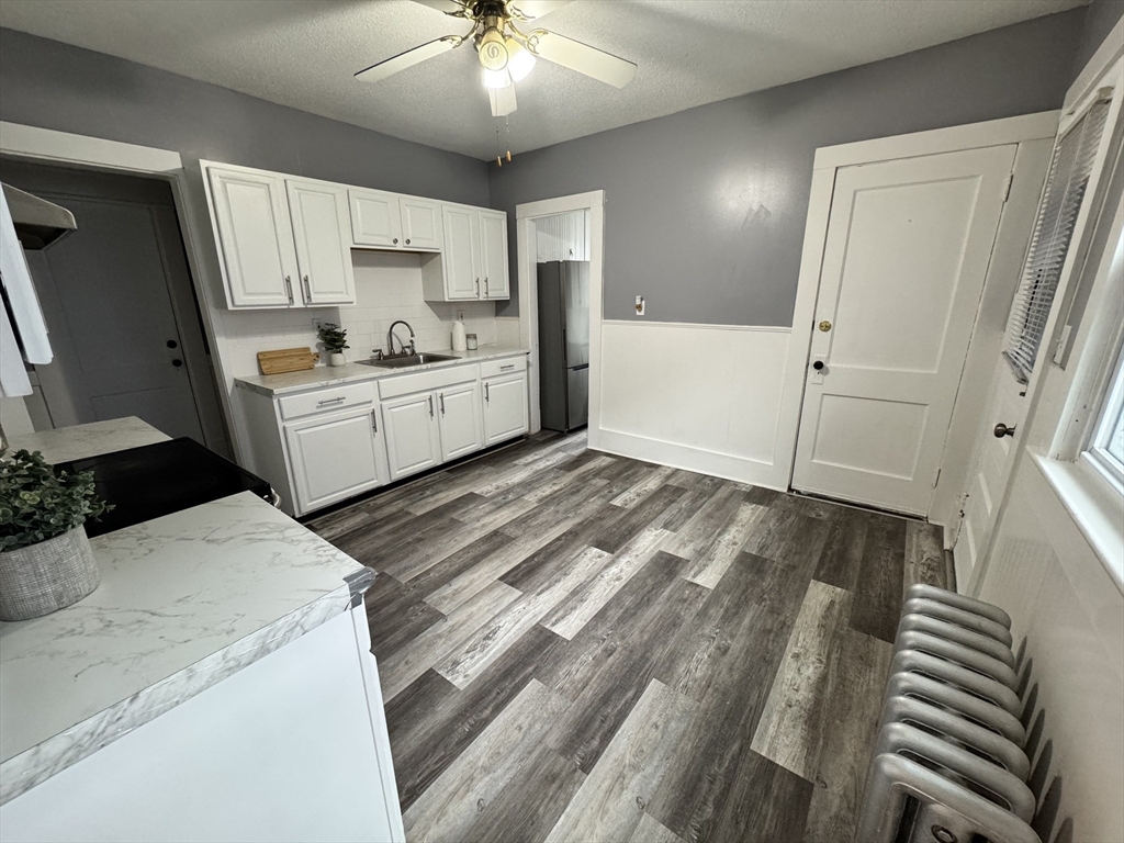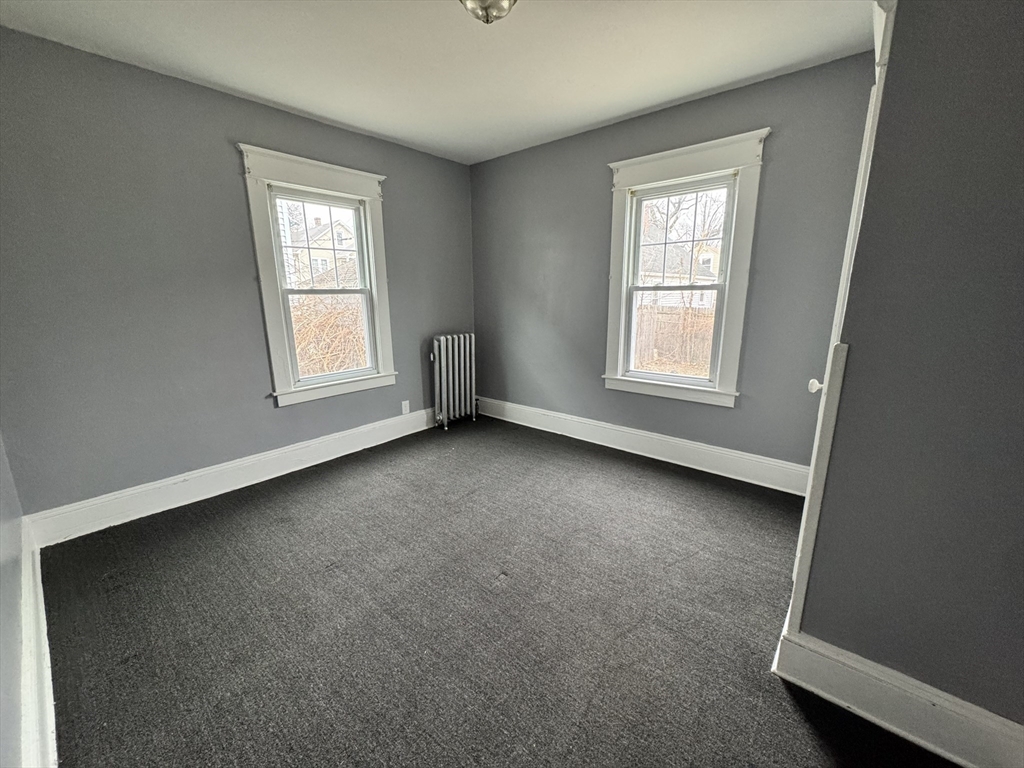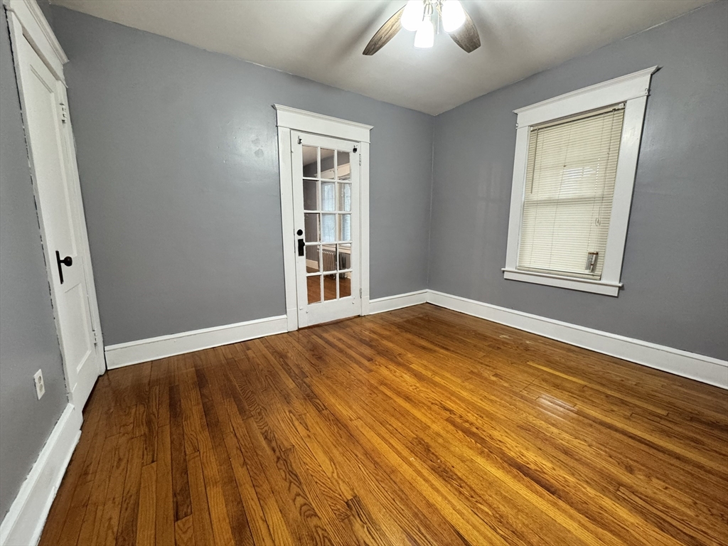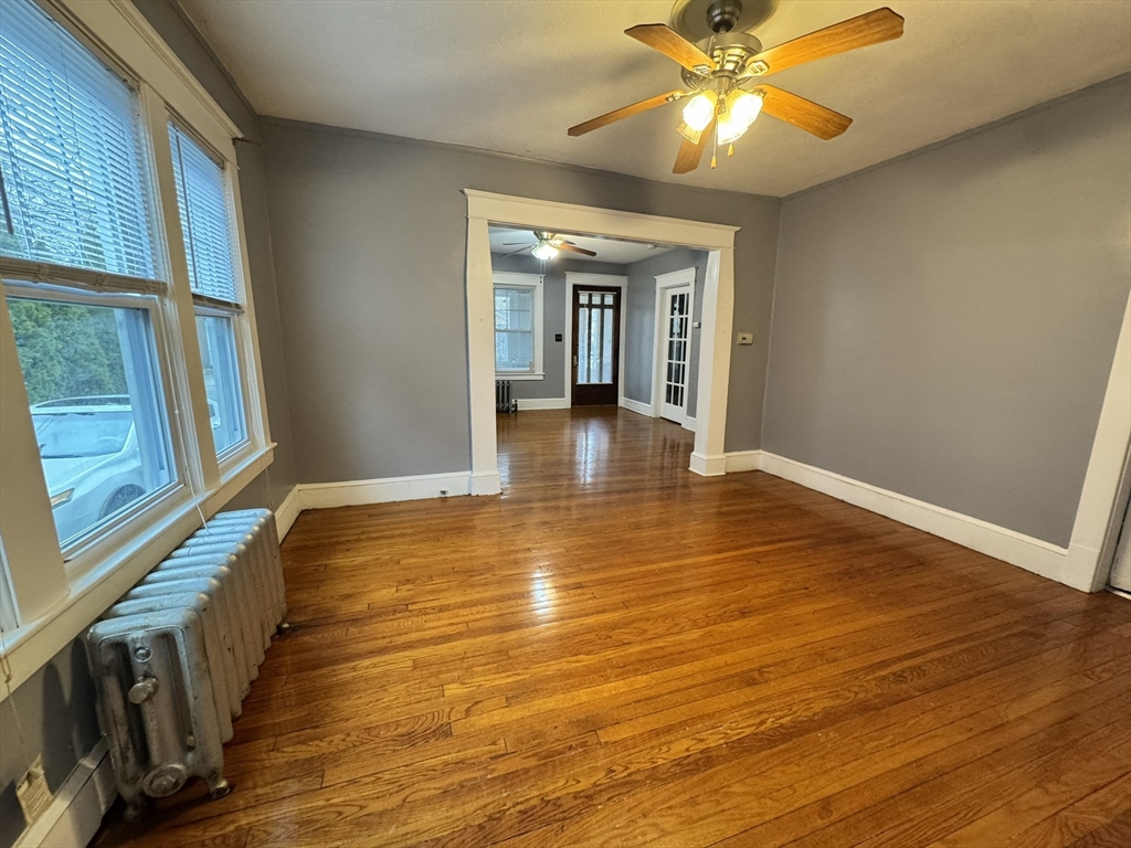 Spacious 3-bedroom, 1-bath first-floor apartment available now at 134-136 Woodlawn St in Springfield. This unit features hardwood floors in the living room, dining room, and primary bedroom, with carpet in the additional bedrooms. Bright living and dining areas include ceiling fans and overhead lighting. Enclosed porch, common outdoor space, unfinished basement with laundry, and 1 paved driveway parking space plus on-street parking. Conveniently located near public transportation and shopping.
