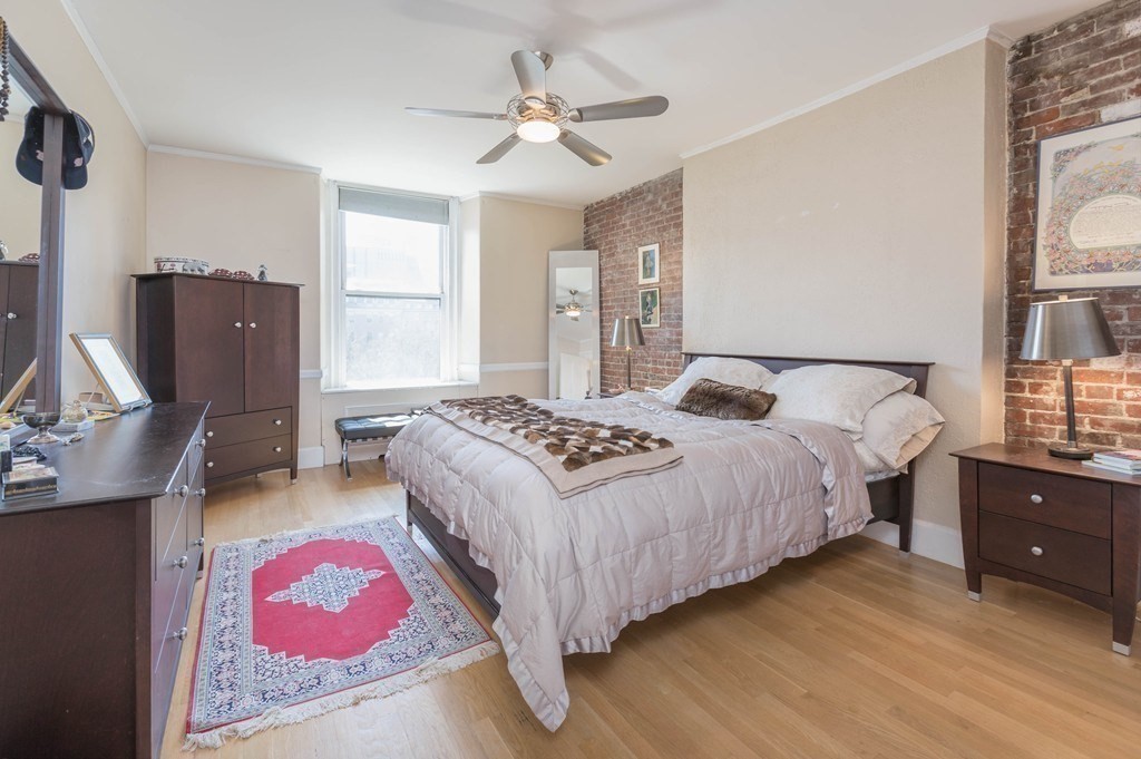 Quintessential Back Bay living on the sunny side of the Comm Ave Mall between Dartmouth & Exeter. This 2 bed, 2 bath penthouse sits atop a beautifully detailed Victorian mansion with a grand parlor entry featuring a sweeping double staircase, ornate columns, original wainscoting, and fireplace. The unit offers two generous bedrooms, including a primary with skyline views. The second bedroom features a walk-in closet with in-unit washer/dryer. Front-facing living room with brick fireplace and bay window showcases tree-top views with the Hancock and Prudential as a stunning backdrop. A central light well fills the home with natural light—ideal for a conservatory. Eat-in kitchen leads to a roof deck with water and electric, offering unobstructed panoramic Back Bay views. Central A/C and walk-in coat closet complete this exceptional home. Professionally managed. Available Sept 1st.