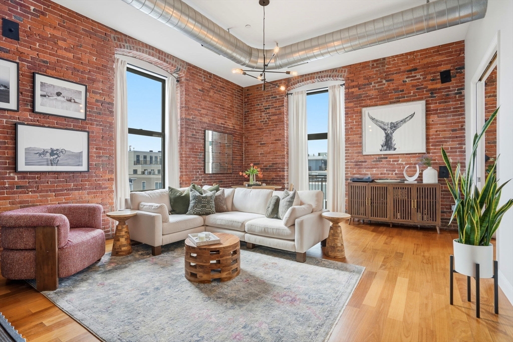 Premier penthouse corner unit located in the historic Lawrence School in South Boston’s West Side. This loft-style home features 13-foot ceilings, exposed brick walls, hardwood floors, and oversized windows that fill the space with exceptional natural light. The open-concept layout includes a spacious living and dining area, along with a high-end kitchen equipped with stainless appliances, granite countertops, and a breakfast bar. The property offers significant flexibility with two bedrooms and two full baths. Additional highlights include updated bathrooms, central AC, in-unit laundry, and a private balcony. The unit also includes two full parking spaces, which is a rare find for this location. Situated in a professionally managed, pet-friendly elevator building, this home is within walking distance of the Broadway Red Line station, as well as the neighborhood’s best restaurants, coffee shops, and boutiques.