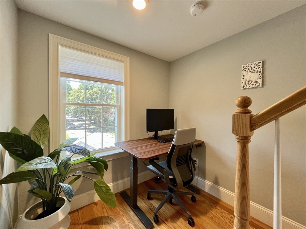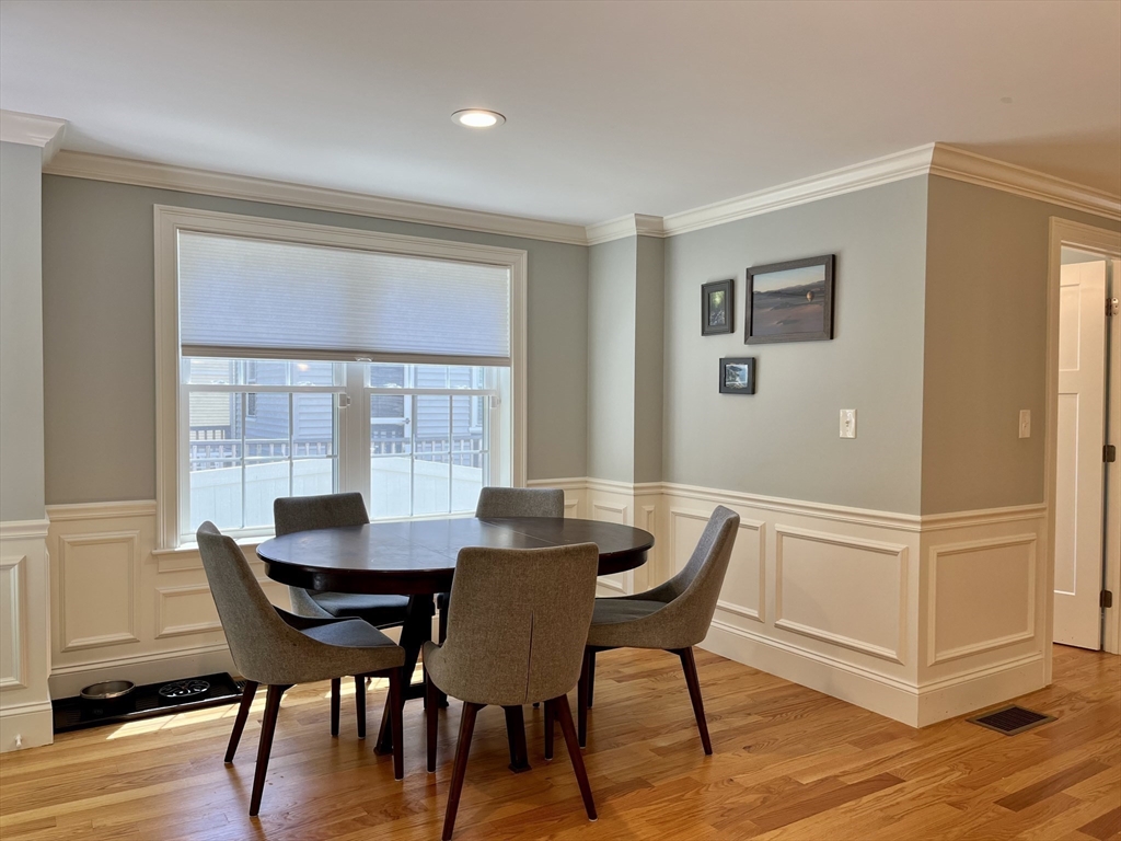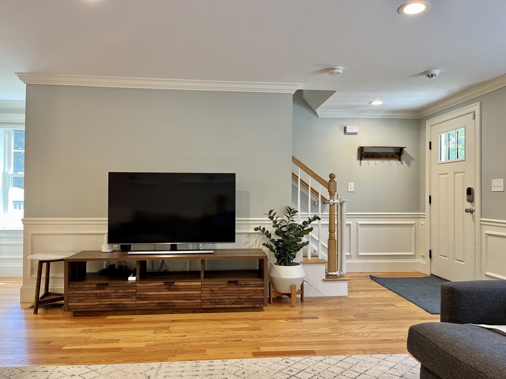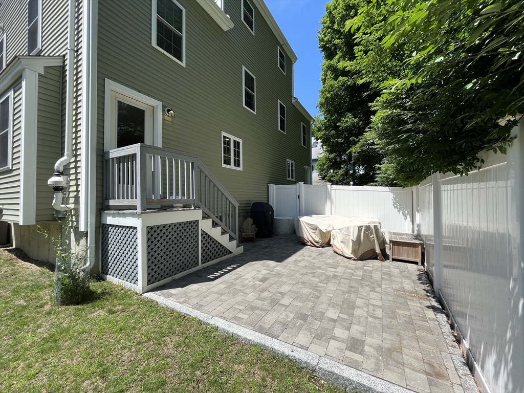 This 2019 new construction 3-bedroom, 2.5-bath Colonial-style townhome near Arlington Center feels and lives like a single-family home. The open-concept first floor is ideal for entertaining yet offers flexible separate seating areas. Built with meticulous attention to detail, the home features a white-cabinet kitchen with granite countertops, stainless steel appliances, hardwood floors throughout, and elegant architectural moldings and panels. The third-floor primary suite is accessed through French doors on the second level and includes a spacious bedroom with a huge walk-in closet and a luxurious master bath with double sinks, separate Jacuzzi tub, and tiled shower. Additional amenities include a gas HVAC system, central air conditioning, second-floor laundry, a 2-car garage, and deeded outdoor space. Public transportation is right at the end of the street, with the bike path and Arlington Center just minutes away.