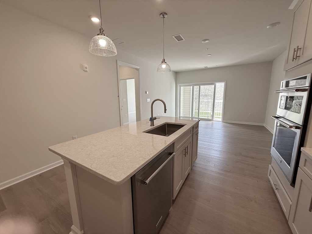 Spacious and sun-filled 1-bedroom + oversized den that lives like a 2-bedroom in a brand-new, modern home. Ideally located with easy highway access and just minutes to shopping, dining, and daily conveniences. This bright unit features peaceful green views and a thoughtfully designed layout. The modern kitchen includes an elevated oven and range, touchless faucet, and brand-new refrigerator—perfect for cooking and entertaining. The generously sized den, nearly as large as the bedroom, offers flexible use as a guest room, home office, or second bedroom. Additional features include a new in-unit washer and dryer. Experience the convenience and style of new construction with the functionality of a 2-bedroom at a great value.