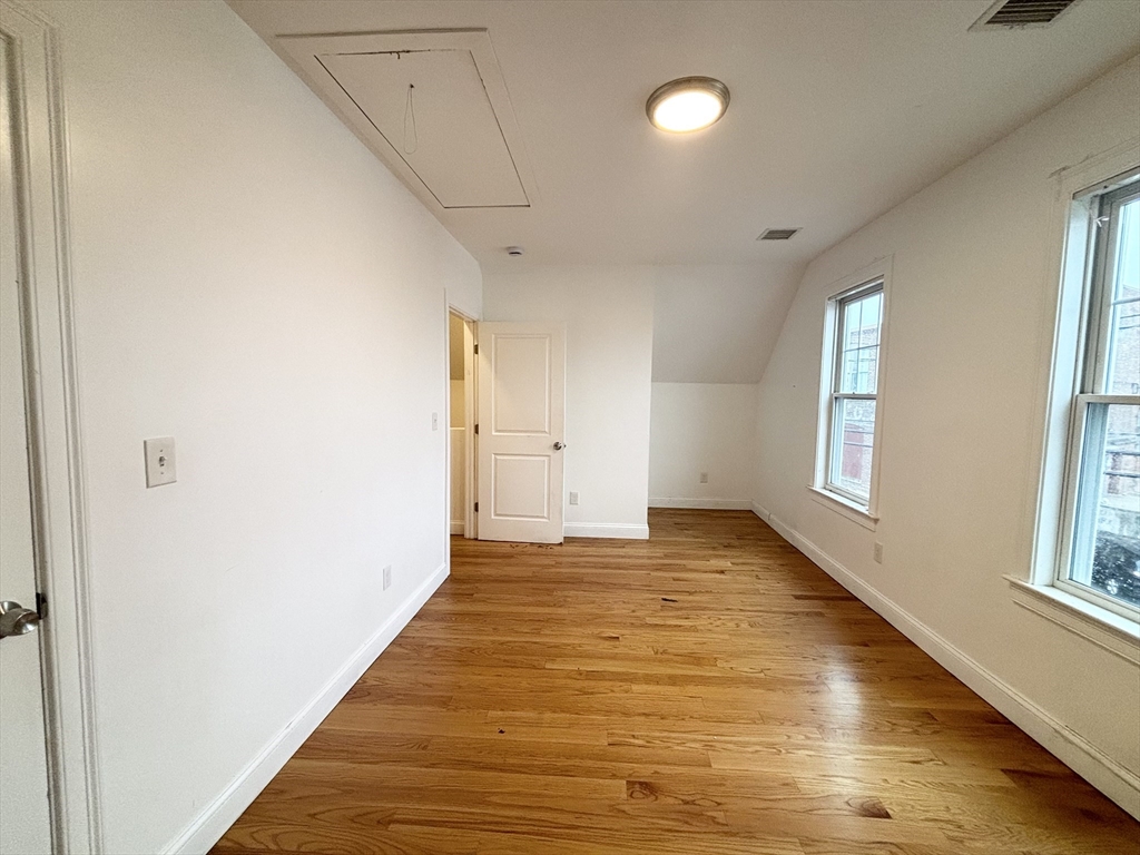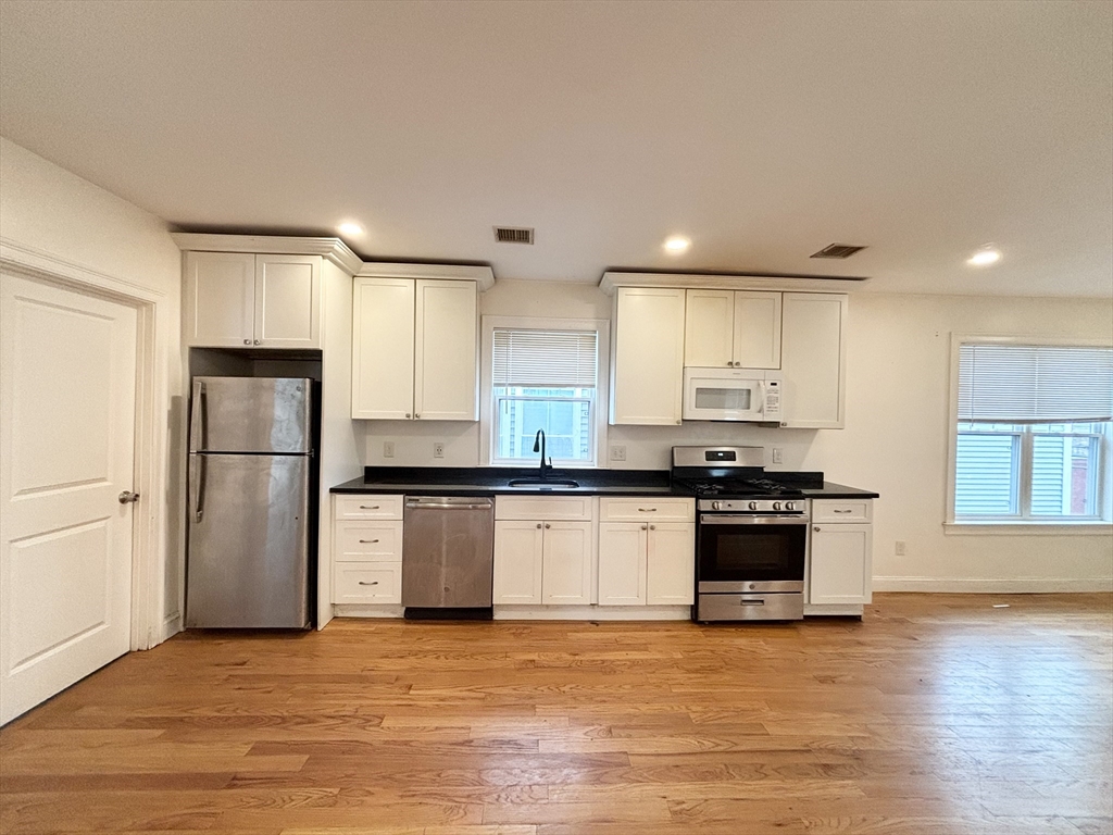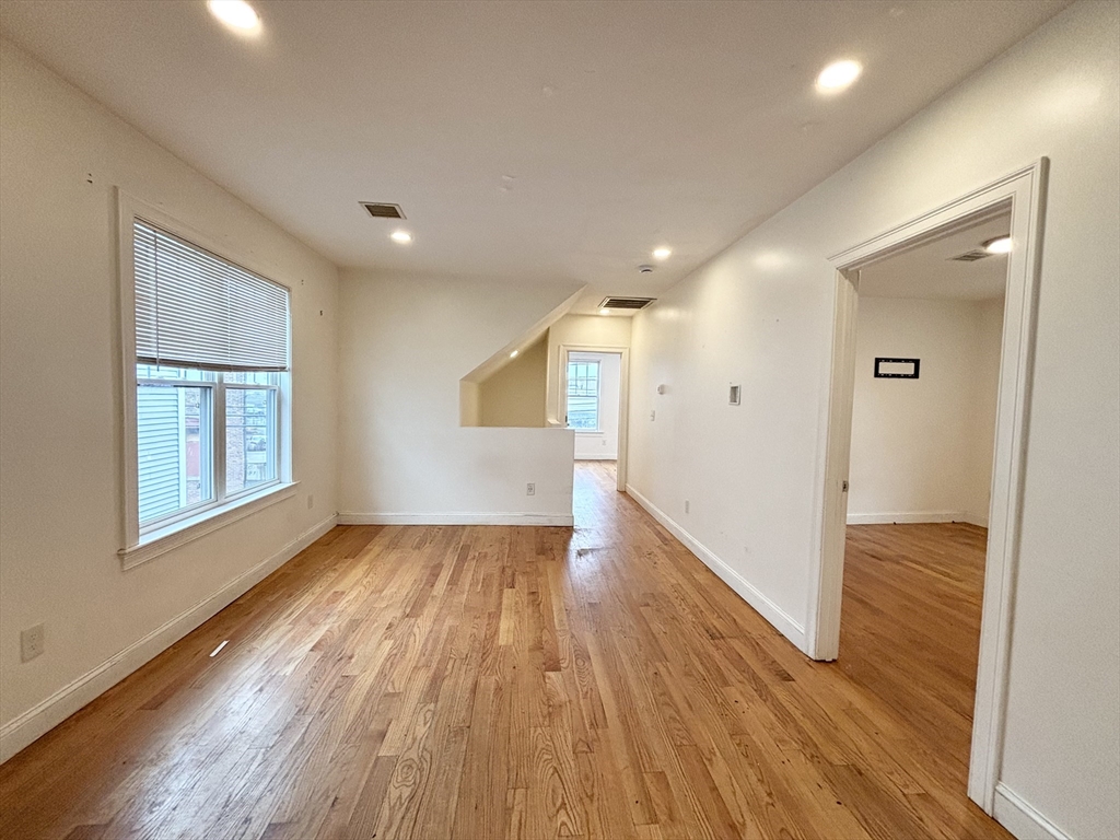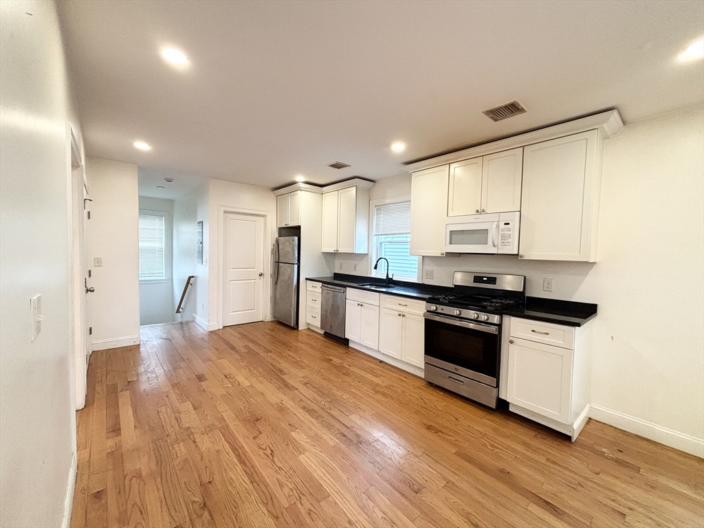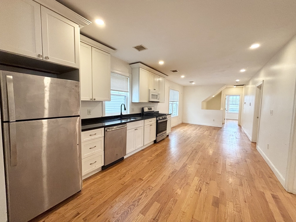 Modern 4 bedroom one bath. Second floor of a two family home. Open kitchen and living room concept. Fully applianced kitchen. Has hardwood floors throughout. Has central air!! Washer and dryer hook ups in the unit. One parking space in the driveway. Close to the Encore Casino and public transportation.