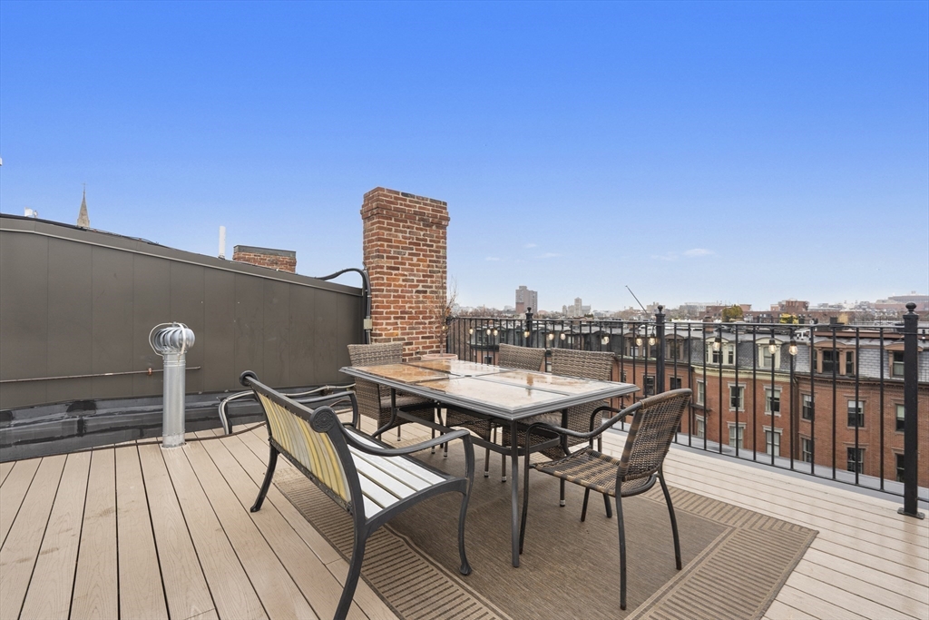 Stunning 2-bedroom, 2-bathroom condo in the heart of Boston's South End! Spanning 1,100 sq. ft., this unit offers a spacious primary bedroom, a smaller second bedroom perfect for a nursery or guest room, a versatile bonus room ideal for an office or den, a dedicated dining room area for entertaining, and the convenience of in-unit laundry. The home features exceptional closet space, with additional storage above each closet extending to the ceiling. Residents will love the elevator building and the luxury of a shared roof deck showcasing breathtaking skyline views. Situated near the South End's best restaurants, shops, and parks, this condo is an absolute must-see! First, last, security and fee to move in. Available 9/1.
