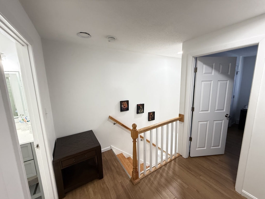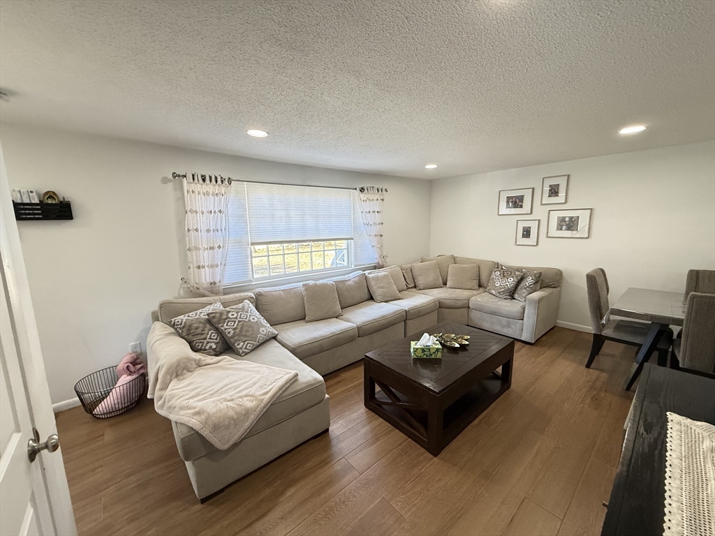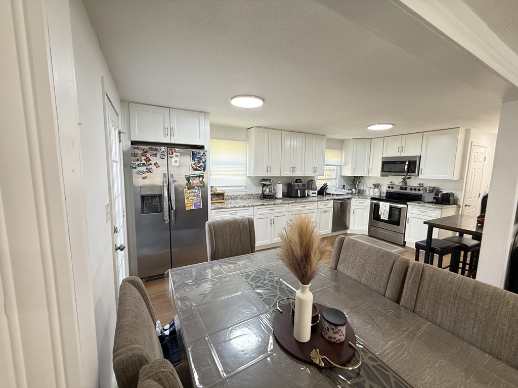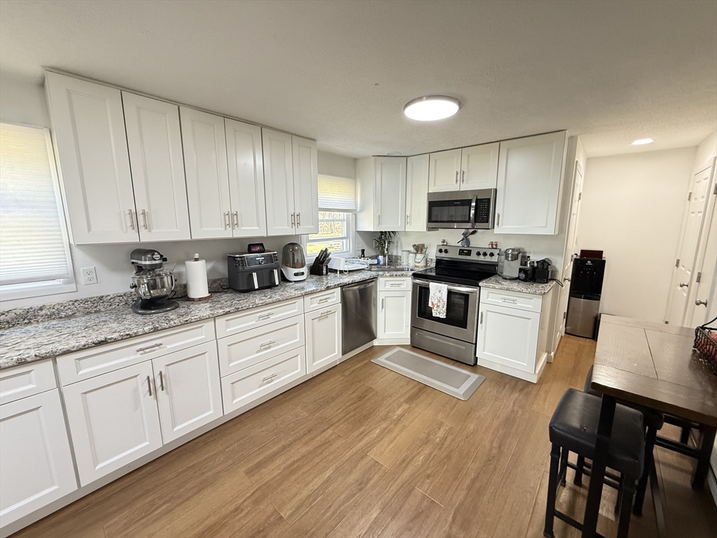 Well-maintained 3BR, 2BA townhouse offering a spacious & functional layout w/ abundant natural light. Updated kitchen features white cabinetry, granite countertops, SS appliances, tiled backsplash & ample prep/storage space, flowing into a dedicated dining area. Main level offers a comfortable living area ideal for everyday living & entertaining. Upstairs, 3 well-proportioned BRs include ceiling fan/light fixtures & generous closet space. Both full BAs updated w/ modern vanities & tiled tub/shower. Additional highlights include vinyl plank HW-style flooring, recessed & LED lighting, & full unfinished basement w/ laundry hookups & excellent storage. Enjoy a private patio & large open backyard. Off-street driveway parking & electric baseboard heat w/ individual room thermostats. Convenient to shopping, parks & major commuter routes. Move-in ready w/ neutral finishes in a great commuter location near I-495 & MBTA. Bright & clean unit, well maintained—won’t last!