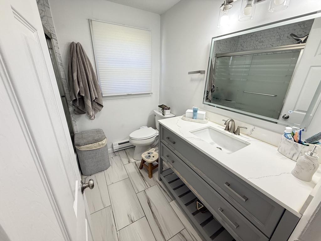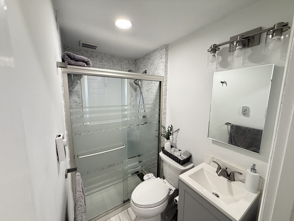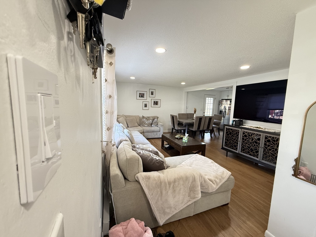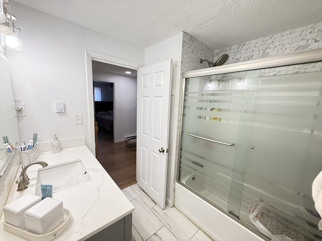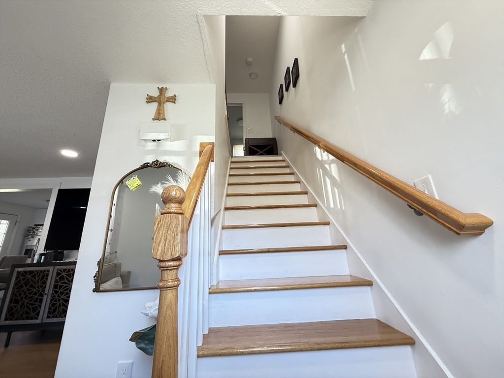 Well-maintained 3BR, 2BA townhouse offering a spacious & functional layout w/ abundant natural light. Updated kitchen features white cabinetry, granite countertops, SS appliances, tiled backsplash & ample prep/storage space, flowing into a dedicated dining area. Main level offers a comfortable living area ideal for everyday living & entertaining. Upstairs, 3 well-proportioned BRs include ceiling fan/light fixtures & generous closet space. Both full BAs updated w/ modern vanities & tiled tub/shower. Additional highlights include vinyl plank HW-style flooring, recessed & LED lighting, & full unfinished basement w/ laundry hookups & excellent storage. Enjoy a private patio & large open backyard. Off-street driveway parking & electric baseboard heat w/ individual room thermostats. Convenient to shopping, parks & major commuter routes. Move-in ready w/ neutral finishes in a great commuter location near I-495 & MBTA. Bright & clean unit, well maintained—won’t last!