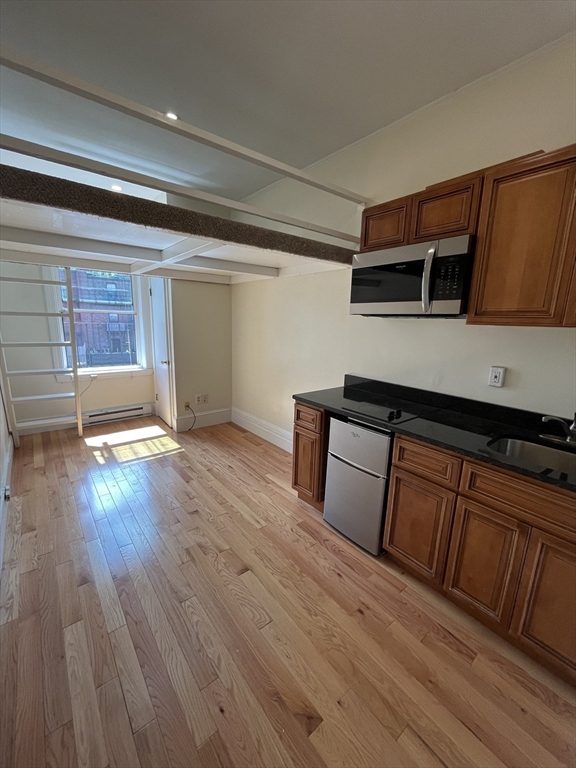 Fantastic Third floor Sleeping LOFT Style STUDIO, Sunny South Facing unit. Kitchen w/ Granite Counter Tops and Microwave, Glass Cooktop, built in stainless steel and new under counter fridge. Living space features gleaming hardwood floors and recessed lighting. Bathroom has tile shower and new toilet, sink and light fixture. Awesome location, steps to the best of Back Bay! Close Proximity to Berklee, NECO and BU! Close to Hynes T stop (Greenline) and the #1 Bus. Easy to get to Cambridge, Fenway/Kenmore and the South End. Short walk to Newbury Street, Prudential Center, Copley Square, Boston Common and the Boston Public Gardens. Laundromat just a block away.