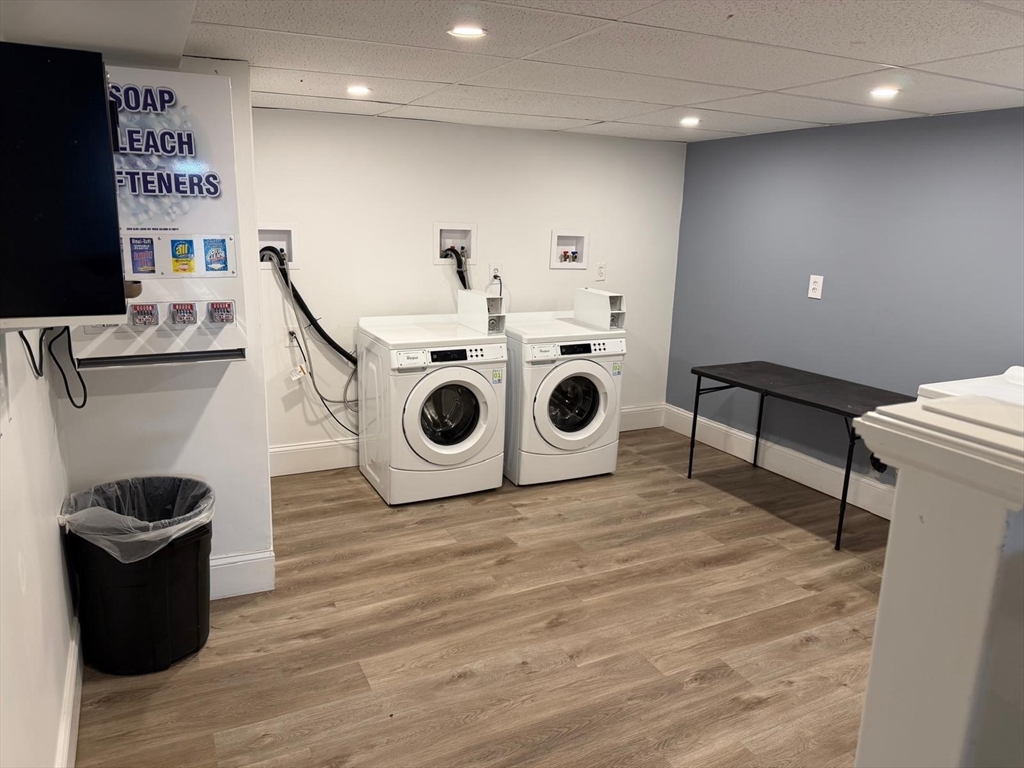 Bright and inviting two-bedroom, one-bath apartment featuring gleaming hardwood floors throughout and a beautifully tiled bathroom with modern finishes. The kitchen is equipped with stainless steel appliances, offering both style and efficiency. Hot water is included in the rent for added convenience. Additional amenities include coin-operated laundry in the building and one off-street parking space. Pets are negotiable, subject to owner approval.