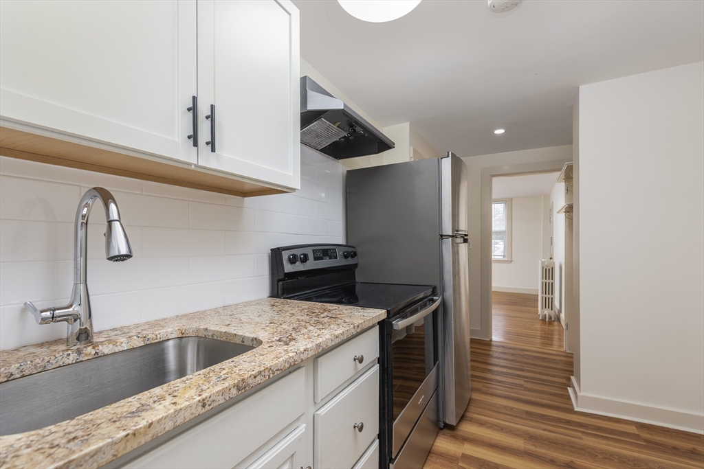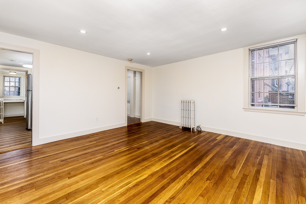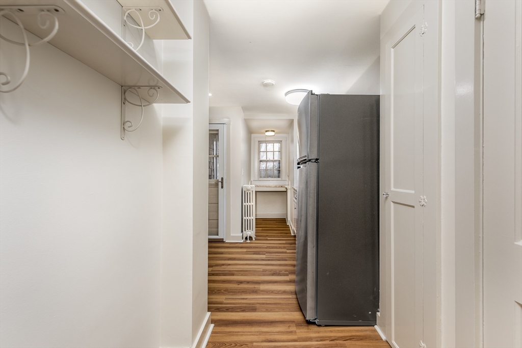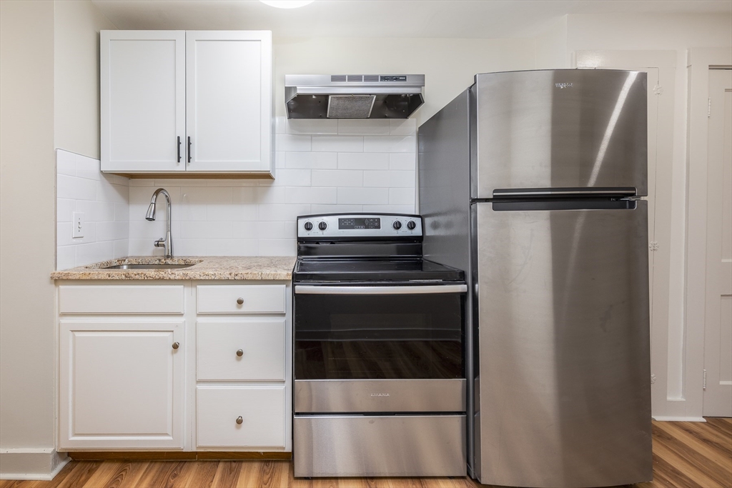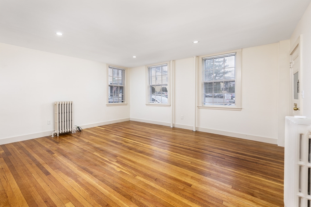 First-floor one-bedroom in centrally located shingle-style building on Washington Street, steps from Marblehead Harbor in the historic district. The spacious living room features refinished hardwood floors, three windows welcoming in natural light, recessed lighting, and cast-iron radiators. Bedroom with direct access to the full bath with tub/shower. Updated kitchen with granite counters, subway tile backsplash, stainless steel range and refrigerator along with built-in desk nook. One off-street parking space included. Walk to Crosby's, the harbor, coffee, and shops. Shared laundry in basement of adjacent building. Cats only.