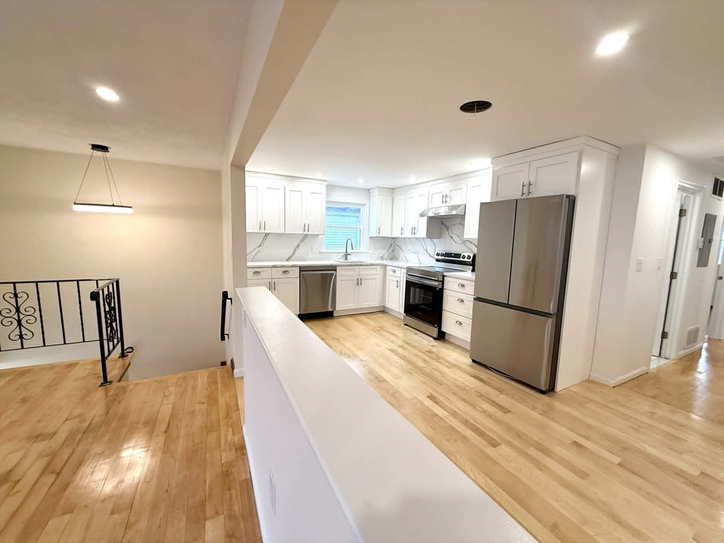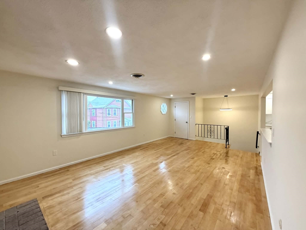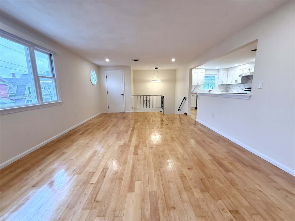 Recently renovated 3 bed, 1 bath comprising the entire second floor of a 2-family home. Tenants can enjoy direct/private unit entry, central AC / heating and an entire driveway exclusive to the unit (for 2-3 cars). Both the eat-in kitchen and adjacent full bath have been completely redone, with stainless steel appliances, quartz countertops and new shaker cabinetry in the kitchen, as well as all new tile, a new vanity/mirror and in-unit laundry in the bathroom. Refinished hardwood floors, new windows and recessed lighting are apparent throughout, and the open concept layout is optimal for lounging, hosting or working from home. No one has to compromise on bedroom size, as all three of the rooms are large enough for virtually any sized bed and offer ample closet space. As an added bonus, one of the bedrooms also leads to a private rear deck that will be repainted this spring.