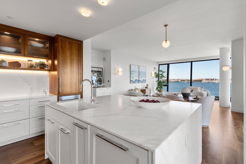 Welcome to Unit 6D at the prestigious 300 Pier 4 Residences—an elegant 3-bedroom, 2.5-bath corner residence where waterfront luxury meets comfort. Thoughtfully designed with custom carpentry, marble countertops, Italian walnut floors and graceful archways, this home offers a distinctive personality and warmth that truly makes you feel at home—and never want to leave. Enjoy stunning water views throughout, creating a serene and ever-changing backdrop. Perfect for entertaining, the open layout invites gatherings, while the building’s three on-site restaurants offer effortless catering for unforgettable evenings. A rare blend of sophistication, convenience, and character in one of Boston’s premier waterfront addresses.