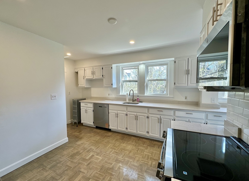 Available June 1st or sooner- Be the first to live in this newly renovated 3 bedroom apartment, located on one of the most desirable streets in Dorchester. Just .3 miles from Shawmut Station on the Red Line in Fields Corner, this classic brick 2 family boasts a brand new kitchen with quartz counter tops and subway tile backsplash, New GE stainless steel smart appliances, electric range with built in air fryer, dishwasher, lots of counter top space and cabinet storage, separate living room and dining room that both get showered with natural light. The brand new bathroom features a contemporary look with new clean fixtures and tile floor. There are gleaming original hardwood floors that have just been refinished, private (free) laundry in the basement, and a garage parking spot included! Additional parking available to rent as well.FIRST & SECURITY DUE WITH LEASE. NO PETS, SORRY.