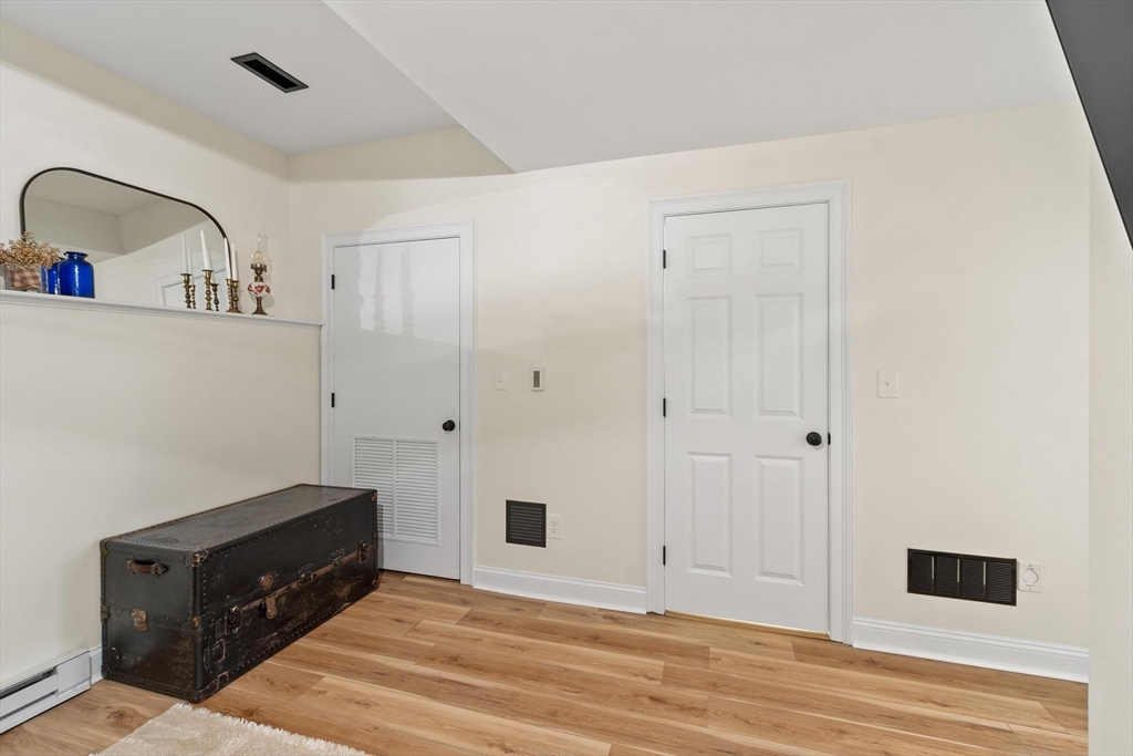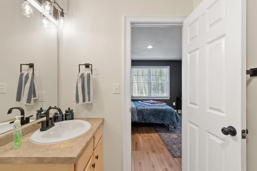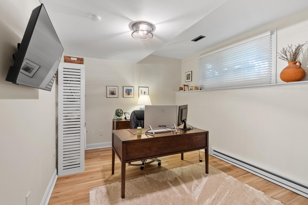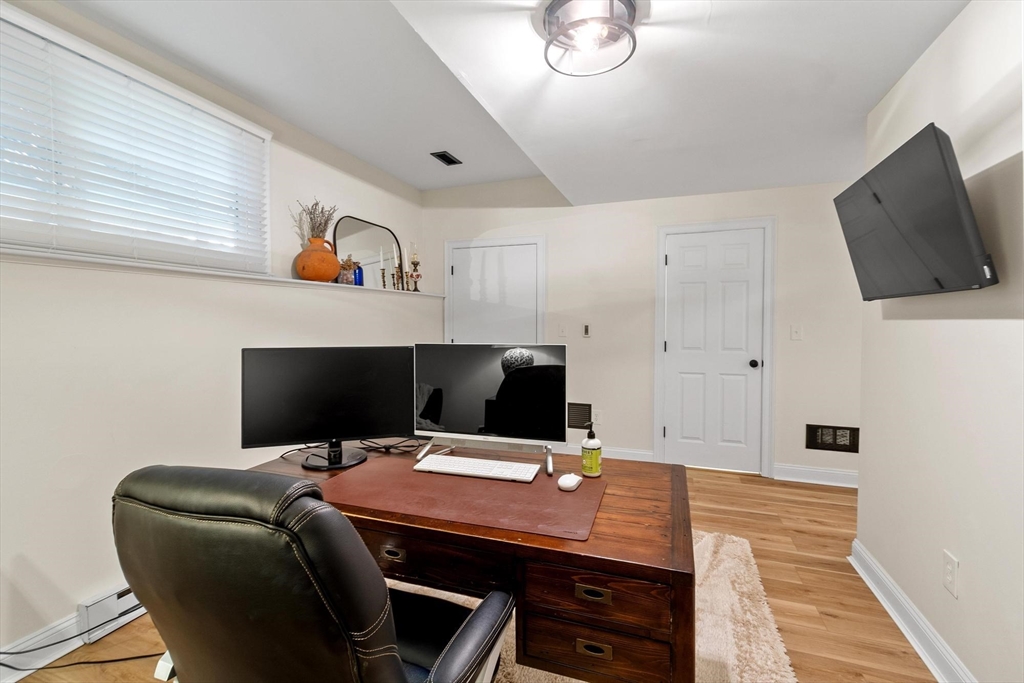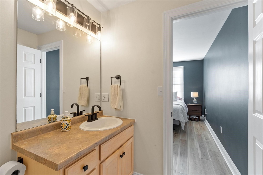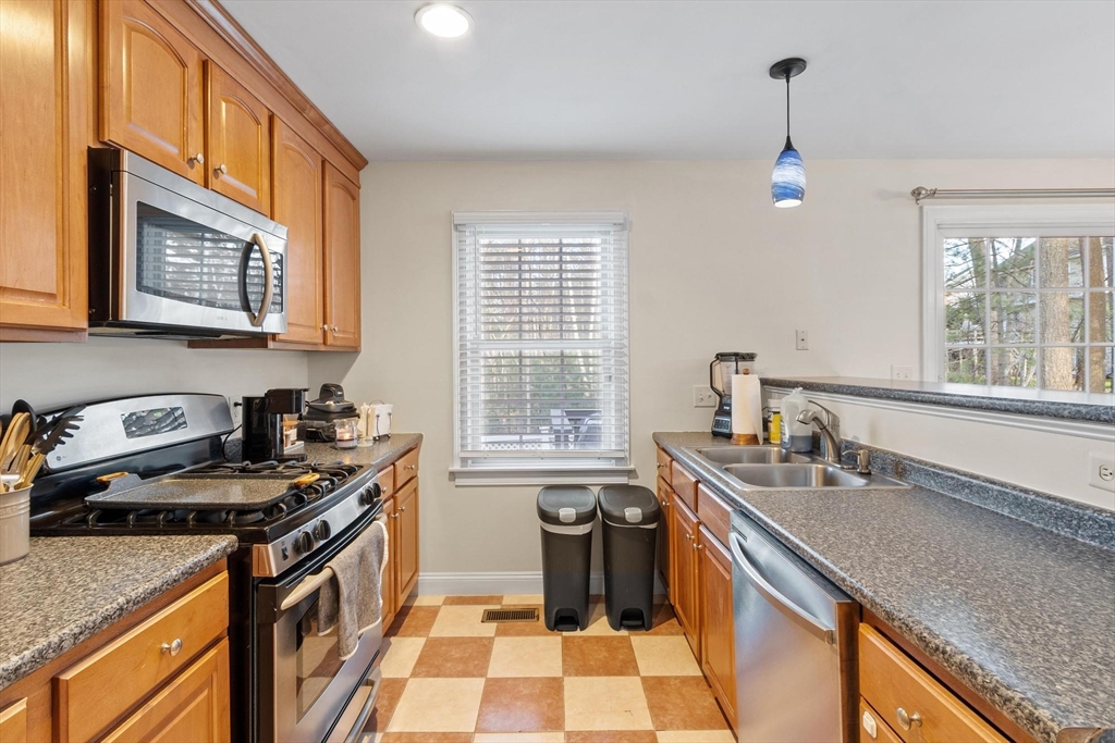 This spacious corner unit townhome presents a distinguished residential opportunity. The well-appointed kitchen is designed for both functionality and aesthetic appeal, featuring stainless steel appliances that complement a practical peninsula, ideal for meal preparation and casual dining. This residence comprises two bedrooms, ensuring private and comfortable accommodations. Complementing these are two full bathrooms and one-half bathroom, providing ample facilities for residents and guests. It also boasts a bonus 1st floor room for an office, playroom etc. Further enhancing the property's appeal is a dedicated laundry room and good-sized rear deck looking out on a wooded backyard. The residence also includes a built-in garage with space for one vehicle. There is one additional spot in the driveway. Nice location within 1 mile of Interstate 495 and Route 3. This townhome is in a safe family neighborhood where kids can play outside in the cul-de-sac.