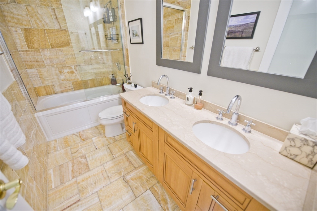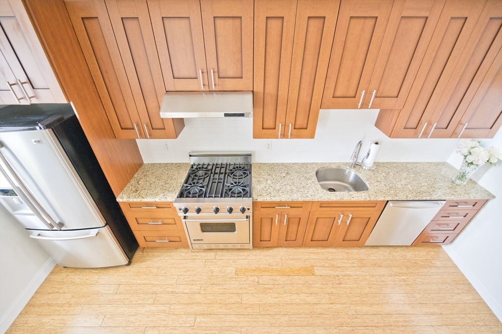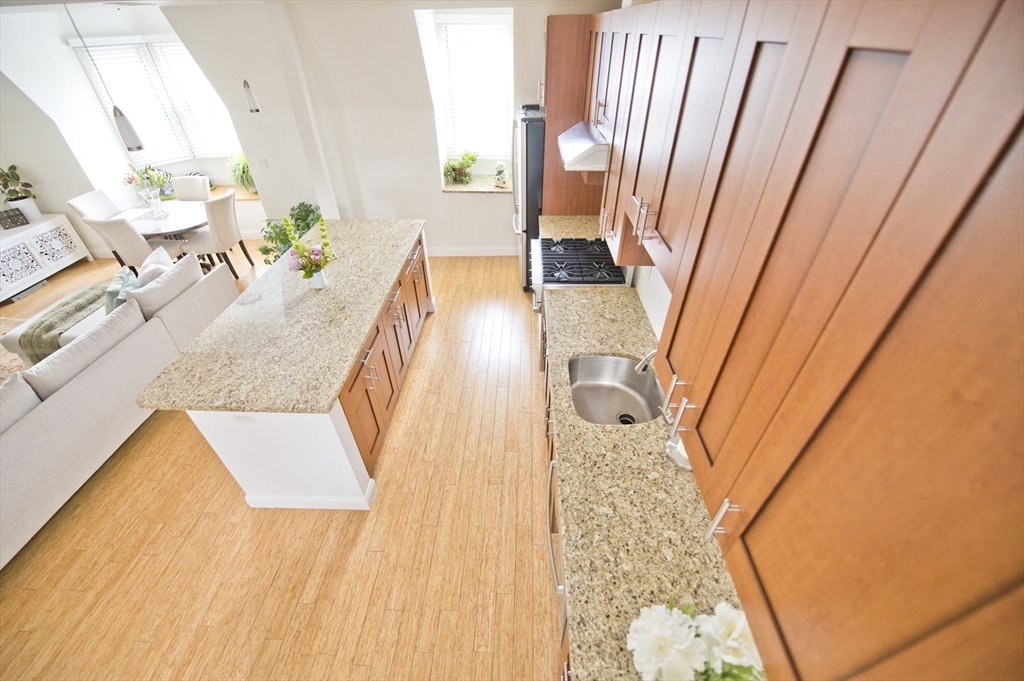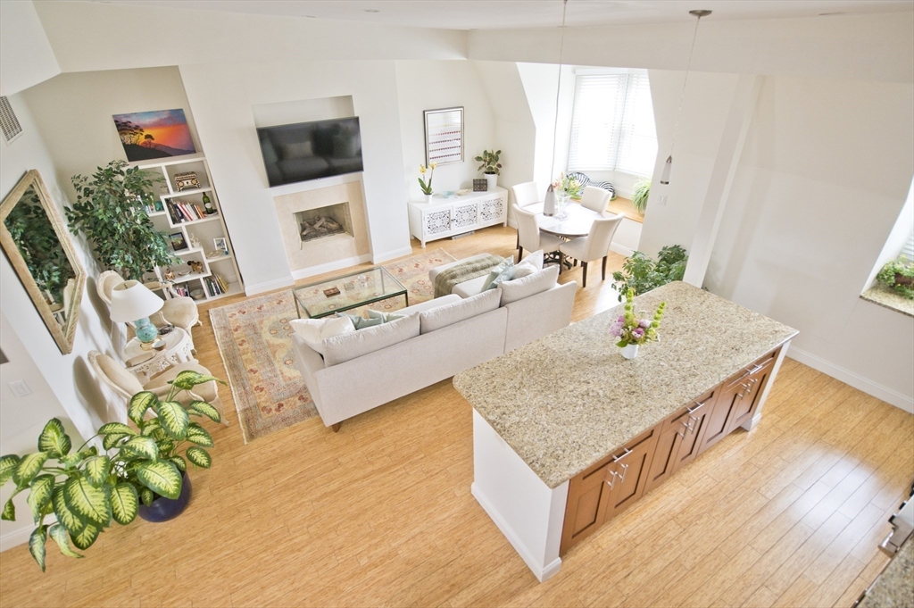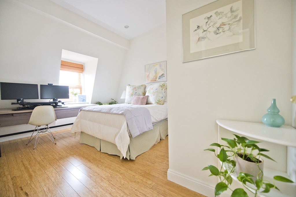 Step into this beautiful Worcester Square penthouse 2 bed just in time for summer. Friends & family may never leave when you entertain them on the oversized, private roof deck w/ sweeping skyline views. There’s a sleek, built-in outdoor kitchen w/ professional grill (connected to gas – no tanks to fill), solid stainless cabinets, Corian counters, sink w/ hot + cold water & outdoor fridge! Built-in speakers can be used w/ Sonos. The unit itself starts w/ an internal staircase leading to the main space open floor plan. Large living room w/ gas fireplace, bay window dining area & a big kitchen w/ ample cabinets, Viking range, granite counters & a HUGE island. Full bath w/ double sinks & natural stone tile. Both beds have large closets & lofted storage areas. In-unit laundry. DEEDED PARKING. Central AC. Hardwood floors throughout. Heat & hot water included in condo fee. Located on historic Worcester Sq. w/ park & fountain. Come see this unit w/ all the best that the South End has to offer!