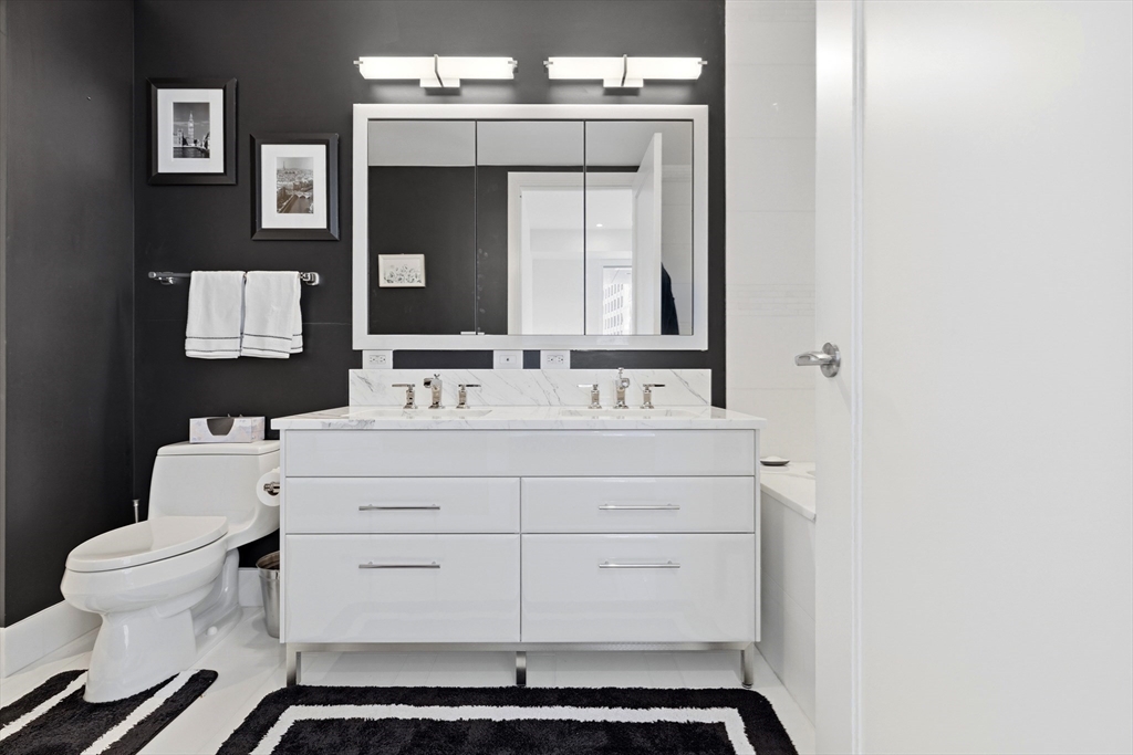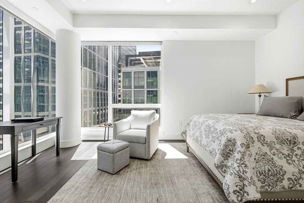 Twenty-Two Liberty!!!!! Buy an exquisite unit at the highly sought out Twenty-Two Liberty property in Boston's popular Seaport area. It is in an amazing location sitting directly on Boston Harbor. Walk out and enjoy the water views, smell the salt air and come home to a neighborhood teeming with energy, famous restaurants and upscale shopping. Sunlight throughout. This unit is appointed with high end Miele and sub-zero appliances, custom white high gloss cabinetry, in home washer dryer, and wide plank hardwood flooring. The floor plan is very popular as it offers split bedrooms to give great privacy and spa-like baths. The unit also includes a private outdoor balcony and assigned indoor parking and extra storage. This is a 5 -star high end service budling offering 24-hour concierge, door- man and on-site property manager to cater to your every need. There is a fitness center and a well thought out social room with outdoor balcony for private gatherings A rare gem.
