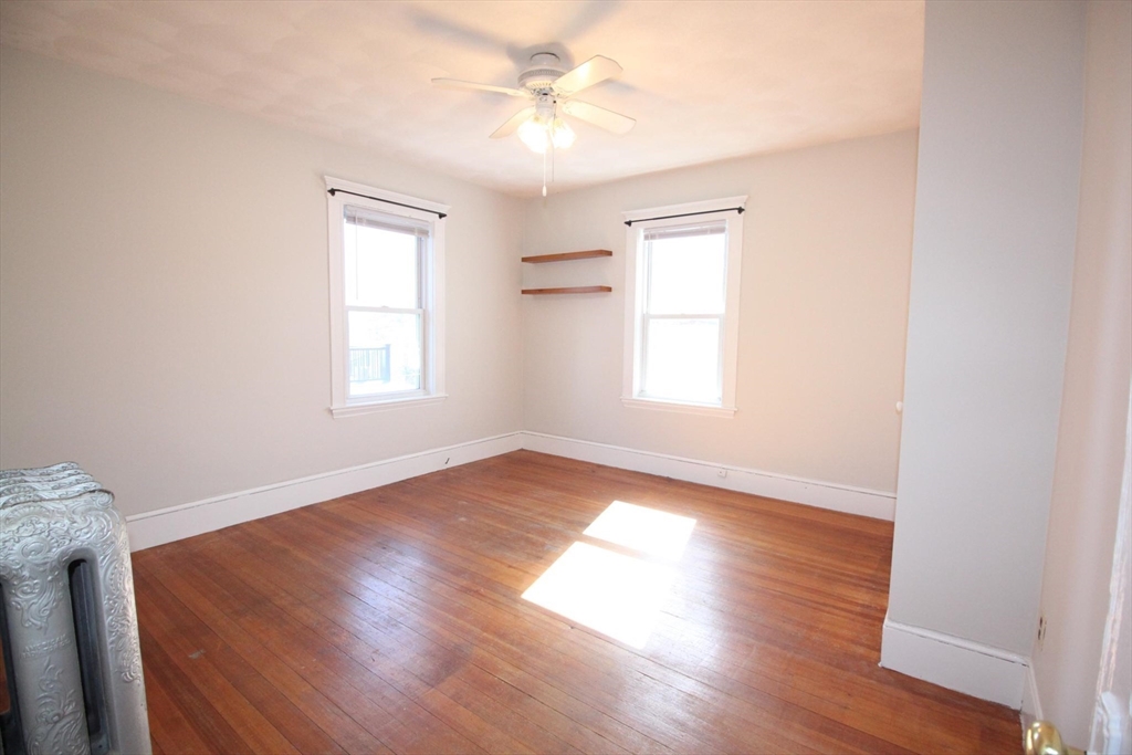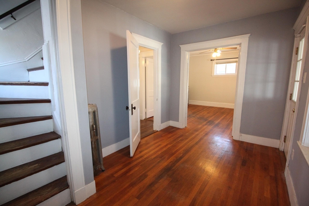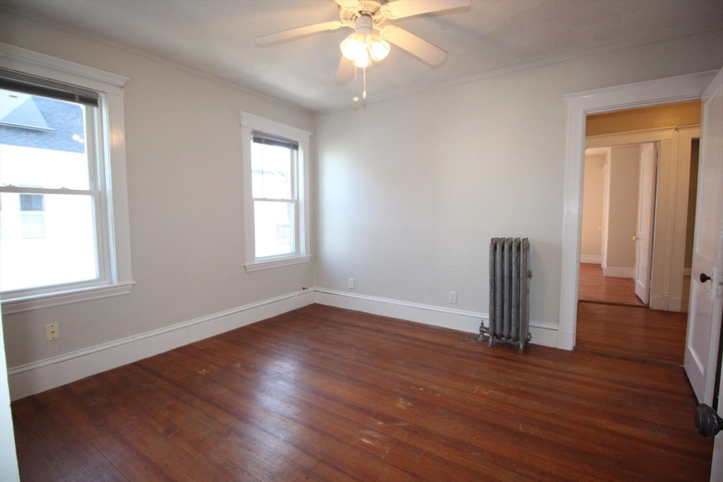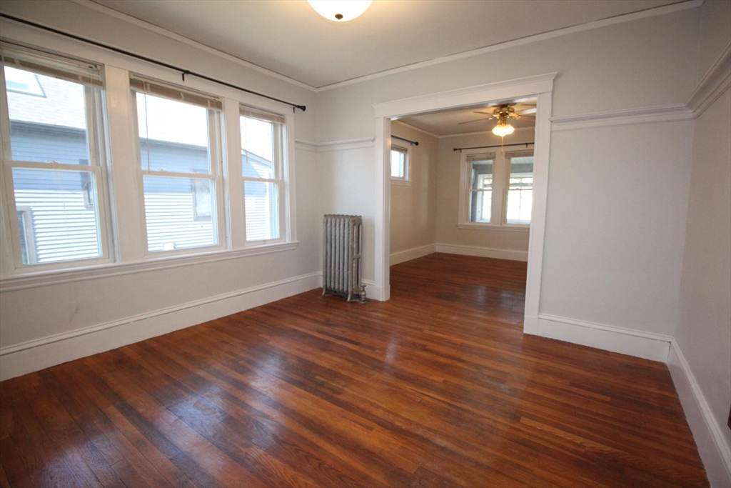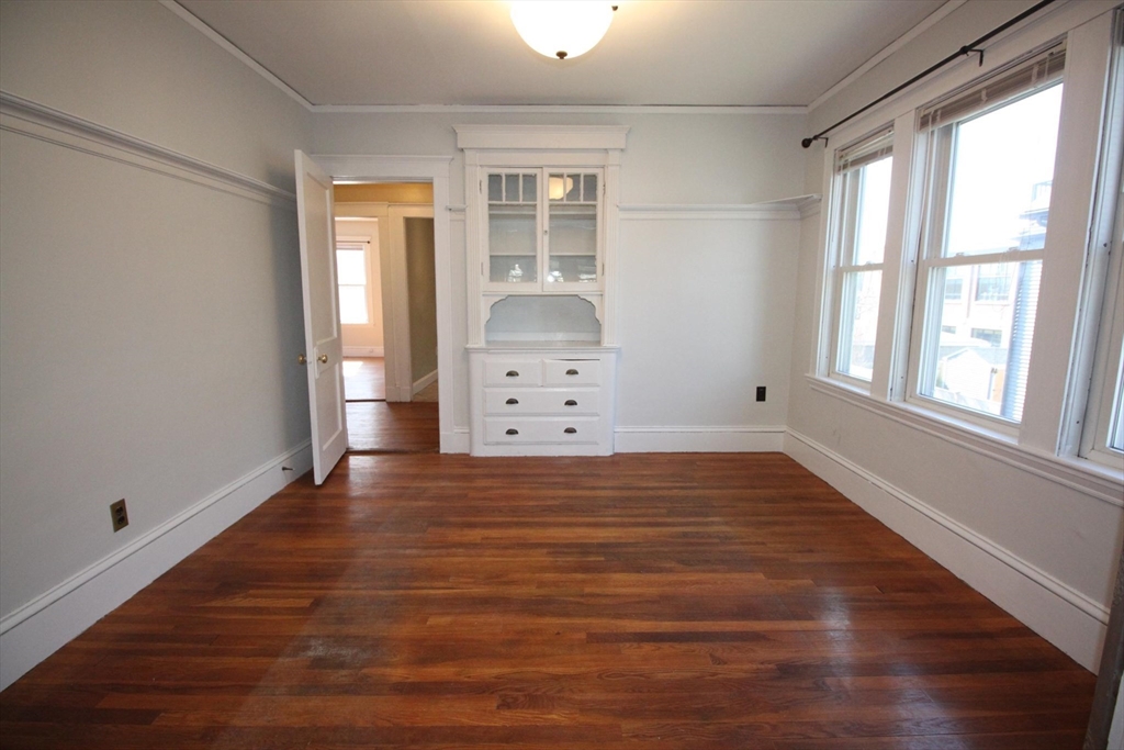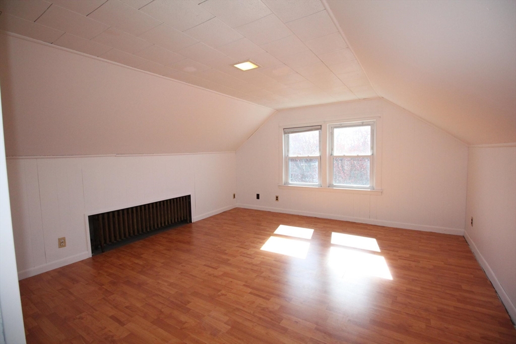 This upper floor apartment spans two floors and checks a lot of boxes! It has a great East Arlington location, Lots off-street parking with sunny, spacious bedrooms. On the first level is the living room and separate dining room with original built-ins, and a large, open and nicely renovated kitchen with an abundance of storage. This floor also has two equal size bedrooms, a renovated bathroom and a 3-saeson enclosed porch in front. The sun-filled top floor has another two, spacious bedrooms, a renovated bath and lot's of storage- including a large cedar closet. All that plus free laundry, ample off-street parking, storage in the basement and shared yard in back for those summer BBQ feasts!