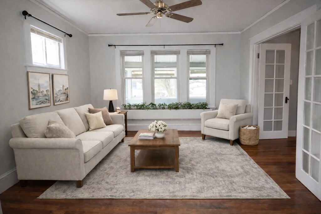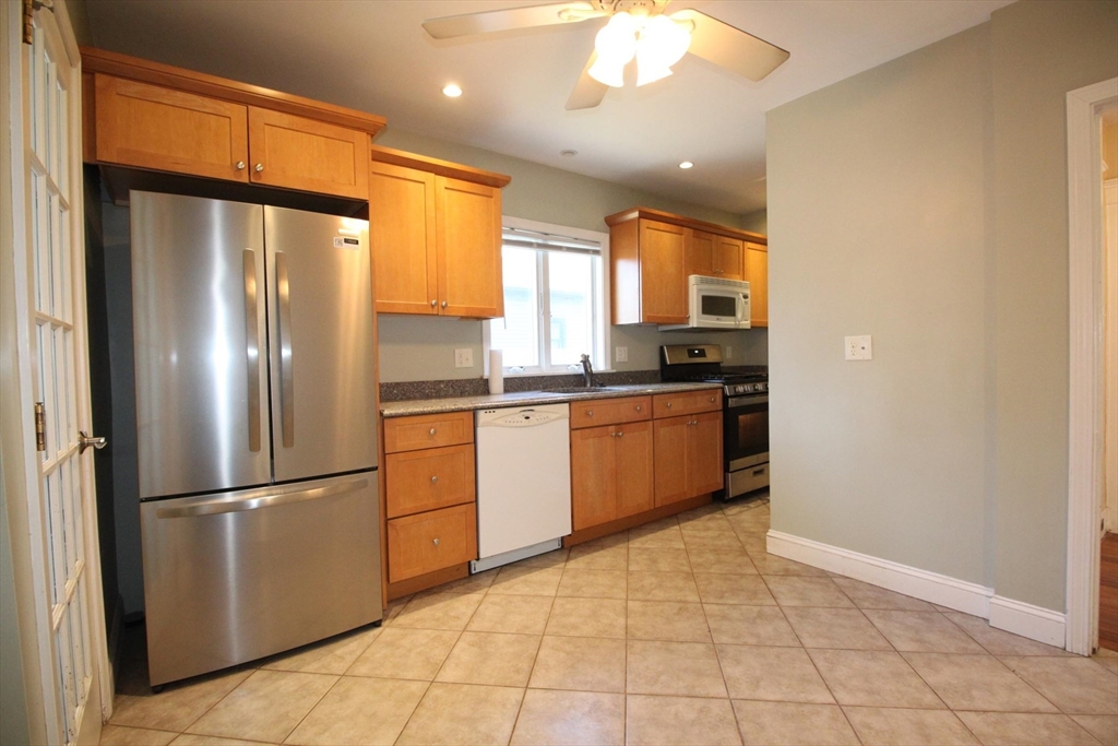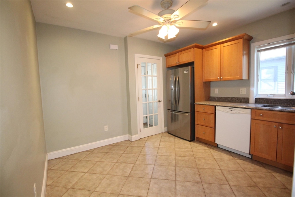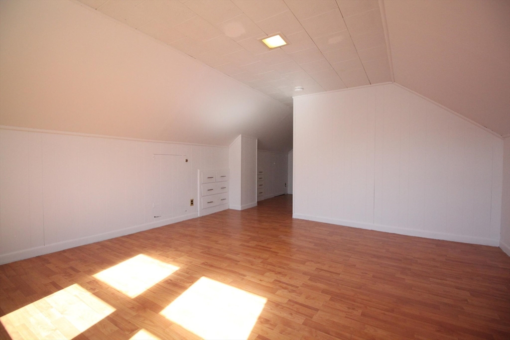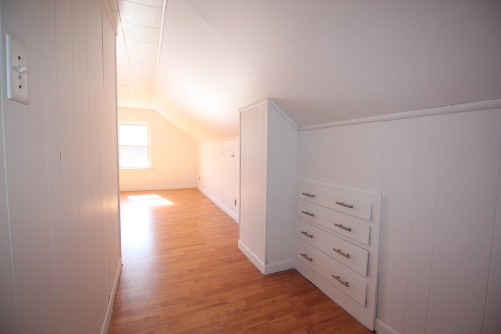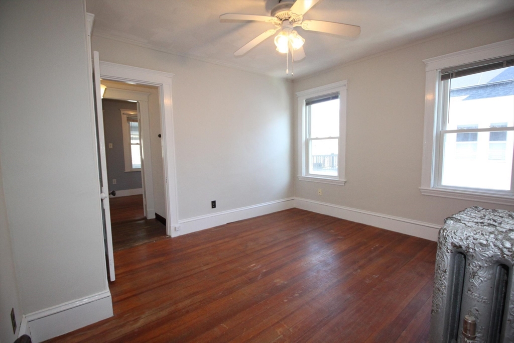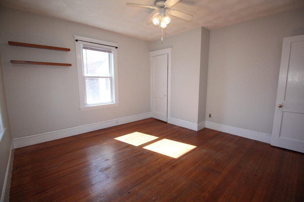 This upper floor apartment spans two floors and checks a lot of boxes! It has a great East Arlington location, Lots off-street parking with sunny, spacious bedrooms. On the first level is the living room and separate dining room with original built-ins, and a large, open and nicely renovated kitchen with an abundance of storage. This floor also has two equal size bedrooms, a renovated bathroom and a 3-saeson enclosed porch in front. The sun-filled top floor has another two, spacious bedrooms, a renovated bath and lot's of storage- including a large cedar closet. All that plus free laundry, ample off-street parking, storage in the basement and shared yard in back for those summer BBQ feasts!