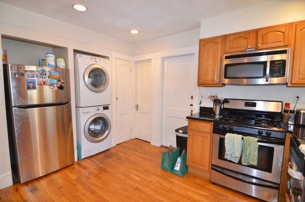 Comfortable three-bedroom apartment AVAILABLE 9/1, Center AC! It features three good size bedrooms, a big kitchen, dining room, living room, a bathroom and a porch. Hardwood floor throughout, the condition is good. Center AC, laundry in the Unit. A very quiet and convenient location, close to T, many stores and restaurants. A must see!
