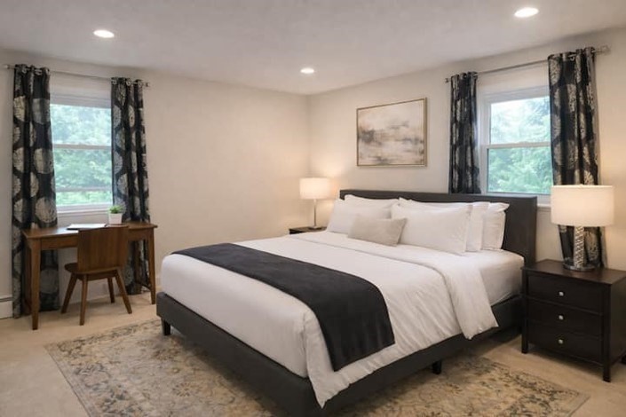 Charming fully furnished split-level 4 bedroom, 2 bath beautifully maintained property features 2 distinct living levels. Upper floor offers spacious open layout, a modern kitchen equipped with granite countertops, stainless steel appliances, and a built-in wall oven, along with numerous windows that bring in plenty of natural light. The bathroom has been tastefully renovated with dual sinks and air-jetted bathtub. The lower level provides excellent additional living space, including a second living room, a bedroom, a full bathroom, and a kitchenette—ideal for an au pair suite, in-law setup, or guest accommodations. Additional features include 2 off-street parking spaces, bi-weekly cleaning and landscaping included in rent. Tenant responsible for all utilities. Located on Route 9, offering easy access to everything Wellesley has to offer. The driveway is conveniently located just past Westgate Road. Situated in the Bates School. Available 8/1/2026.