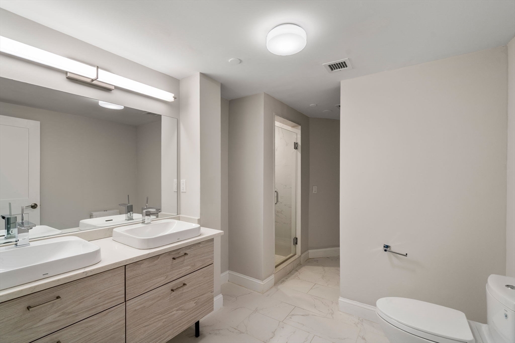 Newer construction at The Cosmopolitan in the South End. Completed in 2021, this boutique luxury building offers 63 loft-style residences w/ concierge, fitness center, residents lounge, bike storage & a tranquil courtyard. THA is a 2 bed, 2.5 bath duplex w/ nearly 2,000 sq/ft overlooking the courtyard. The main level features an expansive open-concept living & dining area w/ soaring ceilings & oversized windows. Skylit kitchen offers Bosch appliances & quartz counters. Bedroom level w/ primary suite w/ walk-in closet & en-suite bath w/ soaking tub & shower. 2nd bed has walk-in closet & en-suite bath w/ floating vanity. In-unit laundry & central AC. Originally built in 1858 as the first site of Boston College, the building was converted to 63 luxury condos in 2021 while preserving historic details including stained glass windows, stone arches, the iconic façade & courtyard w/ magnolia trees. Ideally located across from the BU Medical Campus and steps to parks, restaurants & shops.