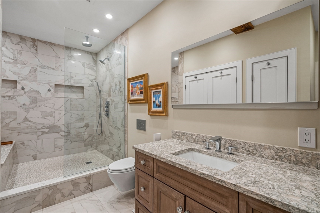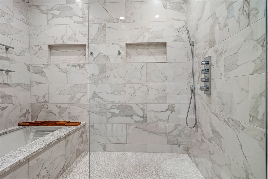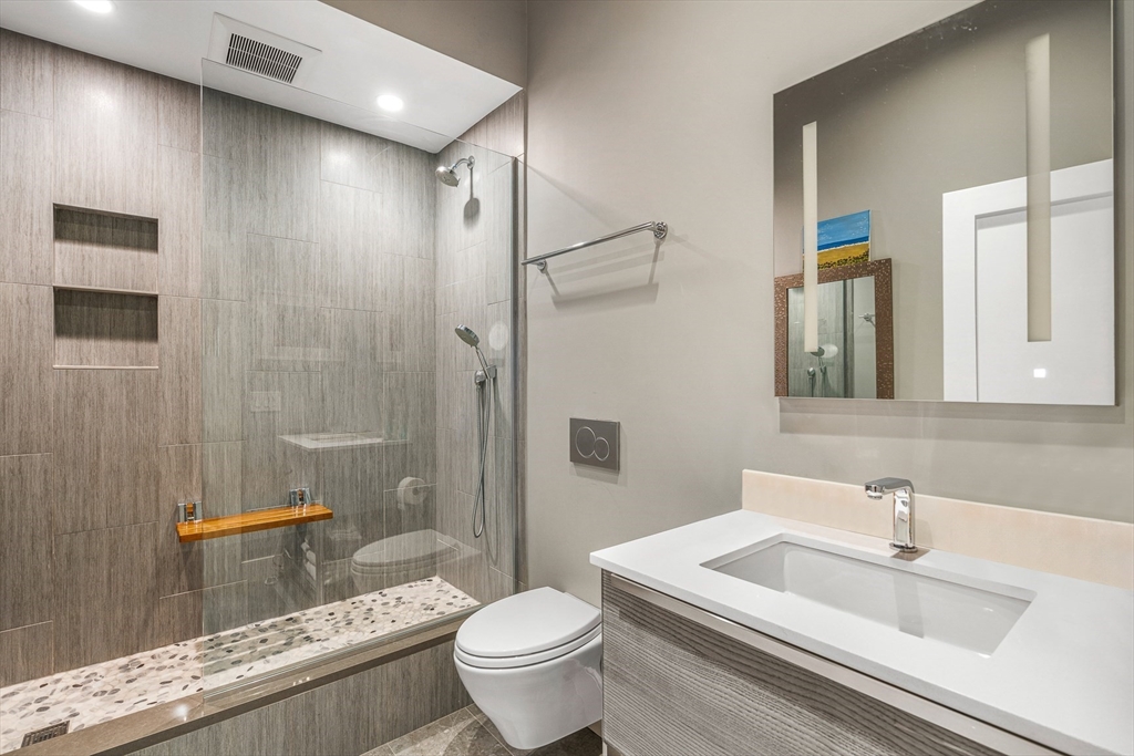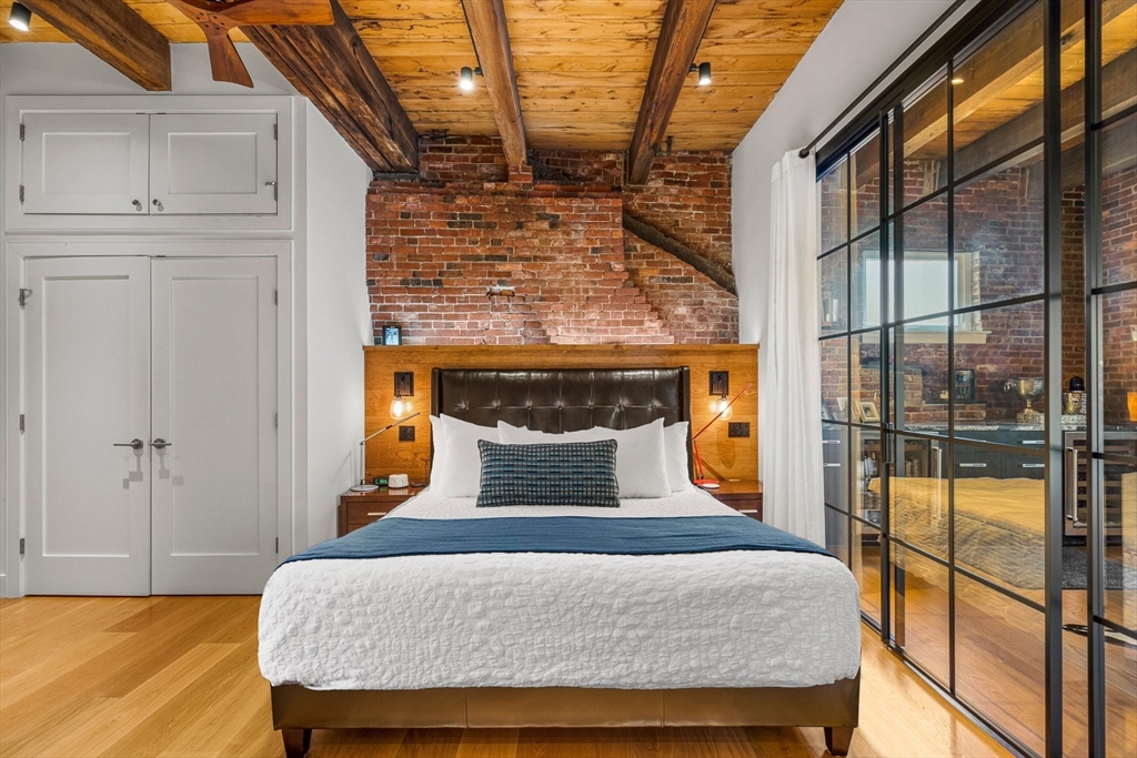 Corner LOFT with Brick and Beams at Union Wharf has been fully redesigned and reconstructed. Truly an open floor plan with glass walls, a wood-burning fireplace w/ stone accents, direct access to private balcony w/water views and deeded on-site parking. Ideal Chef's kitchen has center island, stone countertops, high-end appliances, and custom cabinetry. Matching dining area with custom built-ins and dual wine fridge. King-size master bedroom offers custom glass sliders and designer closets. Dual en-suite bathrooms present spa-like showers, soaking tub, custom tile and finishes. Parking, oak floors, designer lighting, W/D, storage, and fully integrated Audio/Visual. 24-hour gated parking, a sea-side heated swimming pool, on-site management, guest parking, marina rental slips, and a spectacular common roof deck. On the primary footpath, steps to The North End, Seaport District, Greenway, North/South Station, Faneuil Hall, Downtown Boston, and all major transportation points.