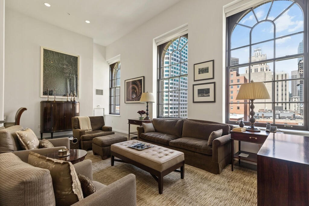 MAY 15 :: 2 BEDROOM PENTHOUSE LOFT — This chic loft is the epitome of a modern oasis with historic charm. Enjoy a luxurious living space with a fabulous gourmet kitchen, 20-foot-tall soaring ceilings, and extraordinary oversized arched windows offering captivating views of Rose Kennedy Greenway. With two floors of living space, your urban sanctuary offers two marble bathrooms, an abundance of closet space, and laundry in unit. Today, pets are part of the family and are welcome in this elevator building. Within the boutique experience, residents have access to amenities including concierge services, a fitness center, and resident's lounge ensuring a lifestyle of ease and indulgence. Nestled in a coveted location between Boston's Waterfront and Downtown neighborhoods, you are moments from some of the city's best dining and shopping, Boston's Seaport, South Station, and Financial District. Garage parking is available for your convenience!